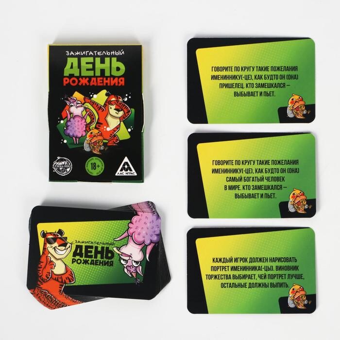 Сделайте свой день рождения еще более незабываемым! С данным набором карт вам это обеспечено, ведь внутри коробки игроков ждут безумно веселые задания, в которых нужно будет танцевать, изображать, поздравлять, и, конечно, пить. Поздравьте именинника нестандартным образом и разнообразьте привычное застолье!