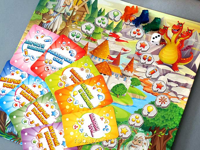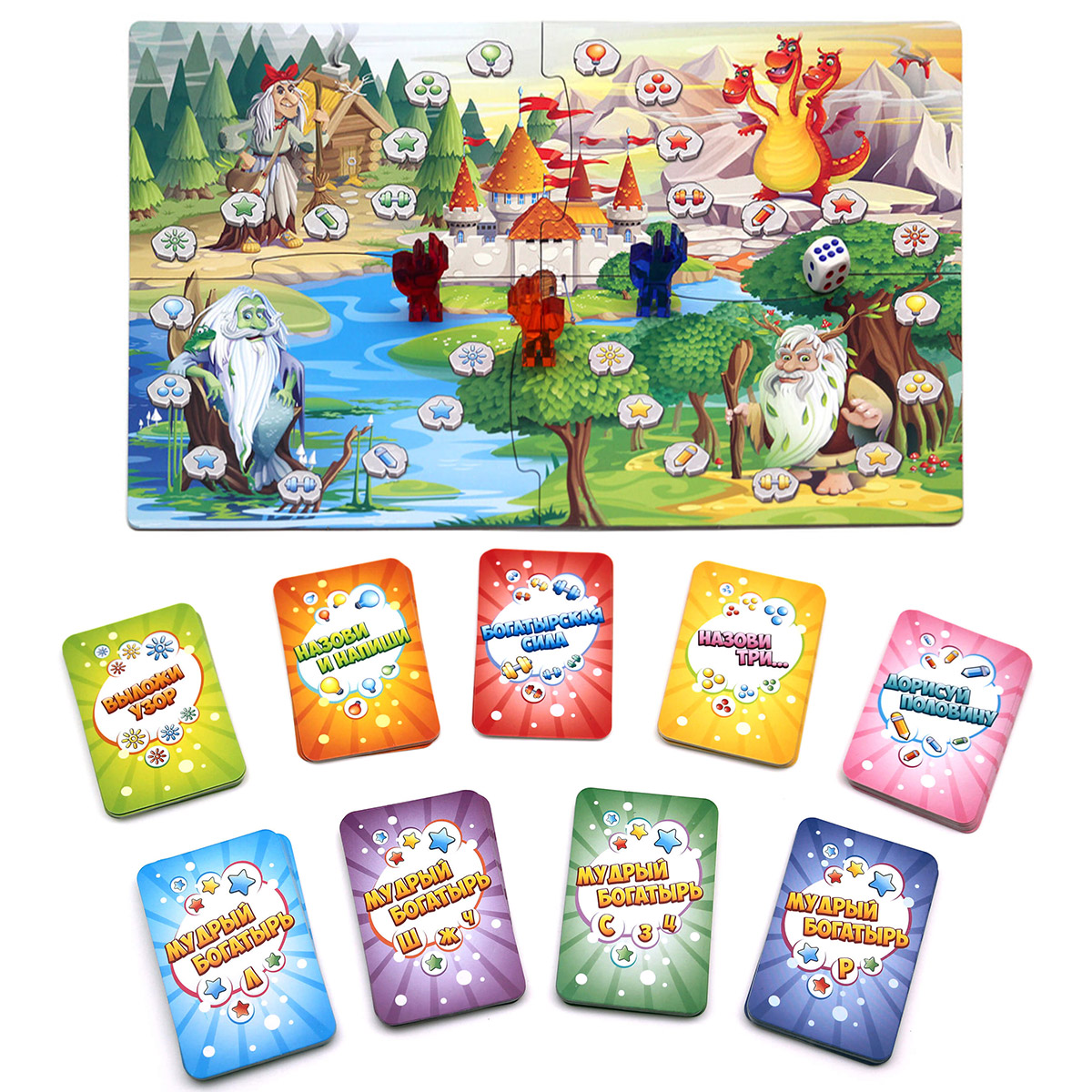 В коробке вы найдете множество заданий различных категорий, в которых игрокам предстоит дорисовывать узоры, искать ошибки в словах, повторять стих и заниматься артикуляционной гимнастикой. Перемещаясь по красочному полю, участники будут получать задания от сказочных персонажей, активно используя воображение, память и внимательность.