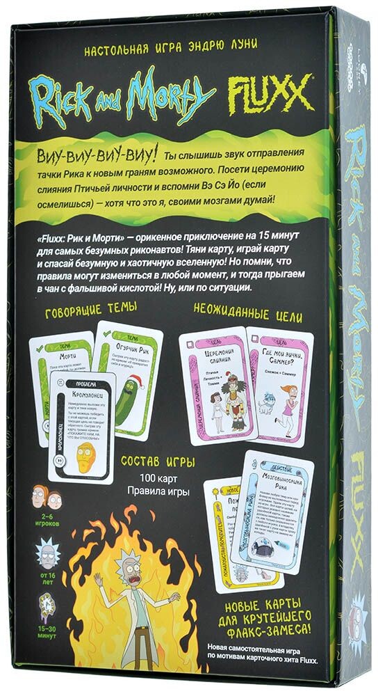 Сразитесь в карточной баталии, где правила меняются с каждым новым ходом. Данное издание встретит вас рисунками персонажей из культового мультсериала. Добирайте карты, разыгрывайте их и вводите новые правила по ходу партии. Таким образом каждая игровая сессия будет для вас восприниматься по-новому. Попробуйте разные комбинации, меняйте правила победы и станьте победителем!