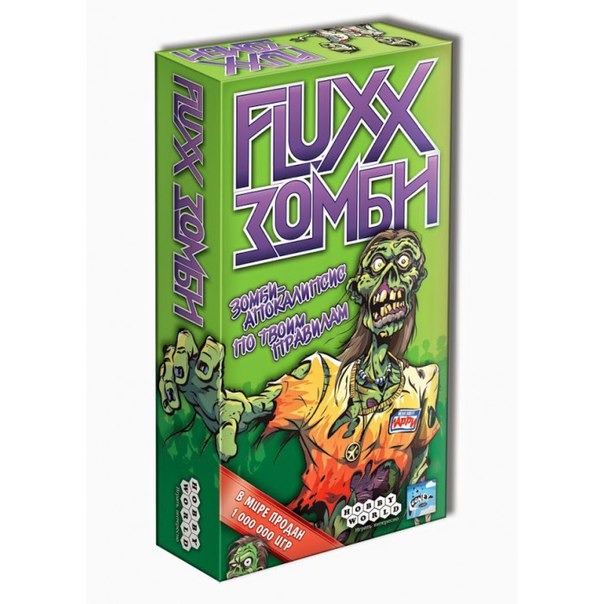 Fluxx - невероятно динамичная карточная игра, в которой правила могут измениться буквально с каждой новой вытянутой картой! Поначалу все просто - вы начинаете с тремя картами на руках, добираете одну и разыгрываете одну. Вот здесь и начинается самое интересное, ведь с новыми картами вводятся новые правила, которые постоянно переворачивают партию с ног на голову: сколько карт должно быть в руке, сколько на столе, и как вообще выграть партию. Благодаря этому, каждая партия будет, в определенной степени, уникальной. Если вы хотите игру с большой реиграбельностью и простыми правилами, Fluxx определенно для вас! Данный выпуск оформлен в зомби-тематике и содержит несколько новых карт с условиями, при которых могут проиграть все игроки.