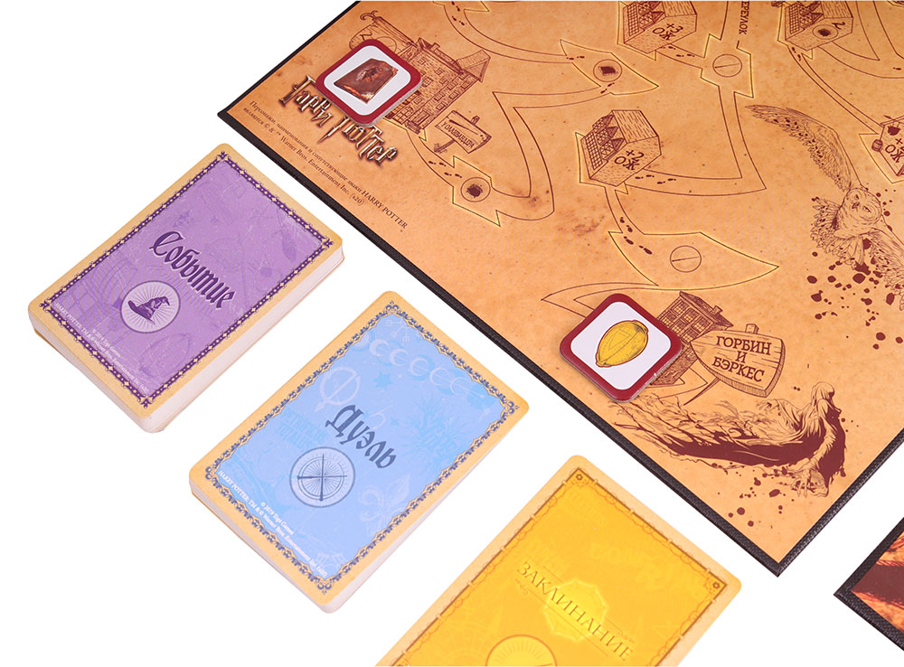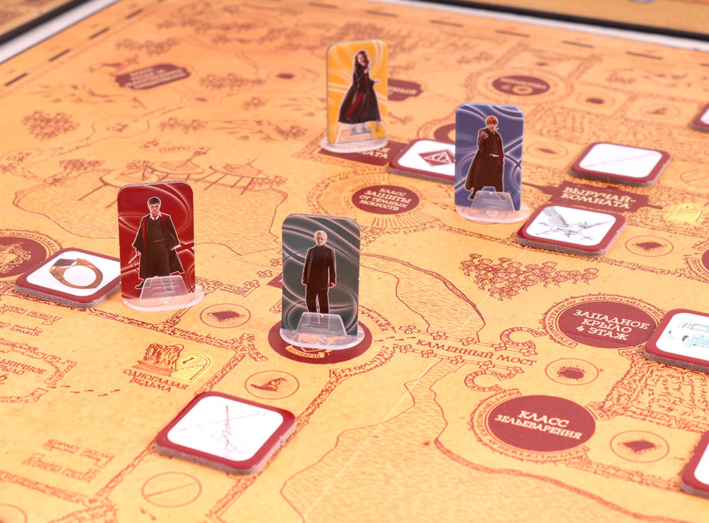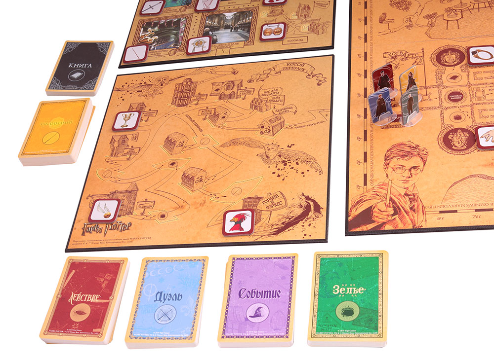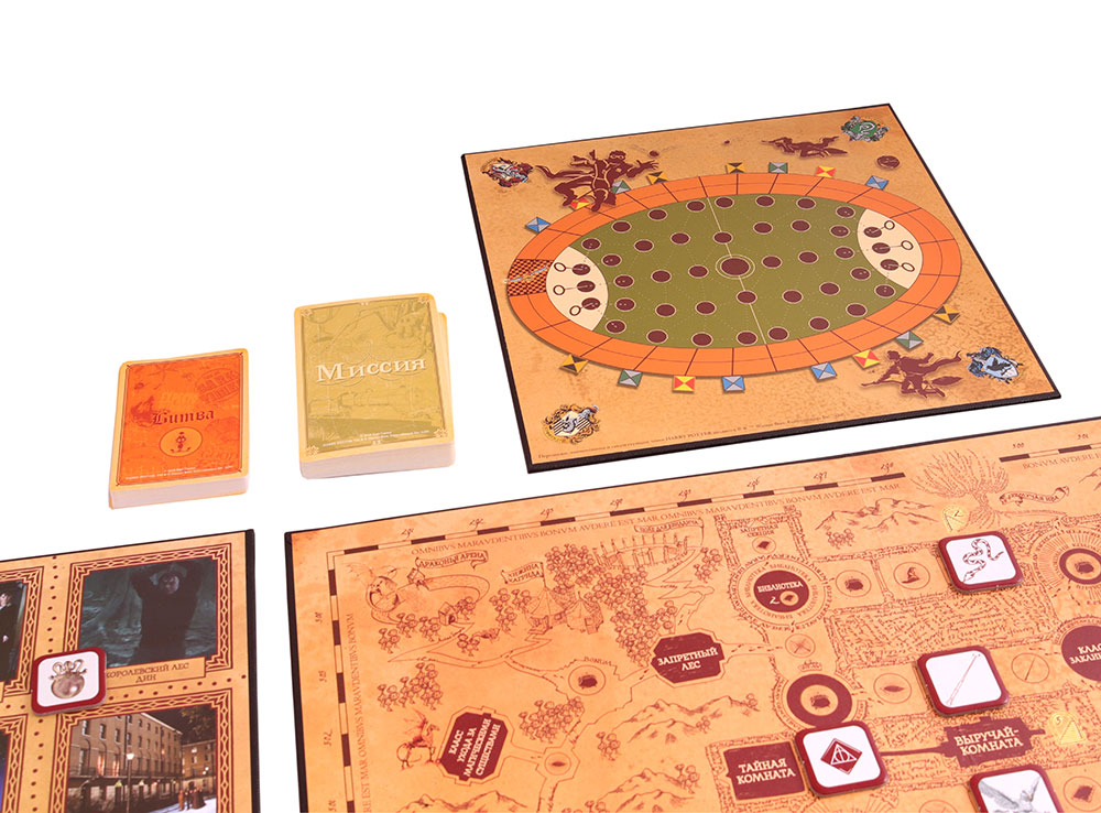 В данной настольной игре, основанной на знаменитом цикле о юных волшебниках, игроки примут на себя роли студентов разных факультетов школы Хогвартс. Каждый соревнуется за то, чтобы показать лучшие результаты и вывести свой факультет на пьедестал почета. Получив на руки фигурку героя, карты заклинаний и планшет, все игроки получают по пять случайных миссий, которые необходимо выполнить. Перемещаясь по нескольким игровым полям, участники находят предметы из цикла книг, видят знакомые места и стараются выполнить поставленные задачи. Оказавшись на определенных участках пути, вы даже сможете сразиться друг с другом с помощью кубиков!
