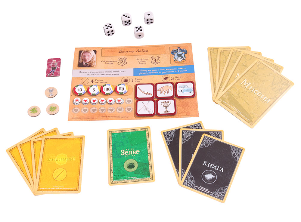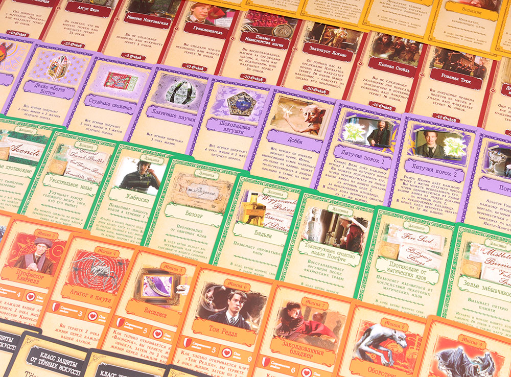 210 карт (карты действий, битвы, дуэли, событий, книг, зелий, квиддича и заклинаний)