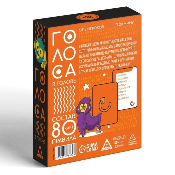 Готовьтесь к шумному веселью! В игре для застолья вас ждут карточки с различными словами, которые нужно называть одно за другим. Игроки делают это одновременно, а участник постарается понять в этом шуме, что ему говорят. За небольшой отрезок времени ему предстоит понять и назвать как можно больше слов, которые ему выкрикивают. За это игрок получит победные очки. Кто распознает наибольшее количество слов, тот и станет победителем!