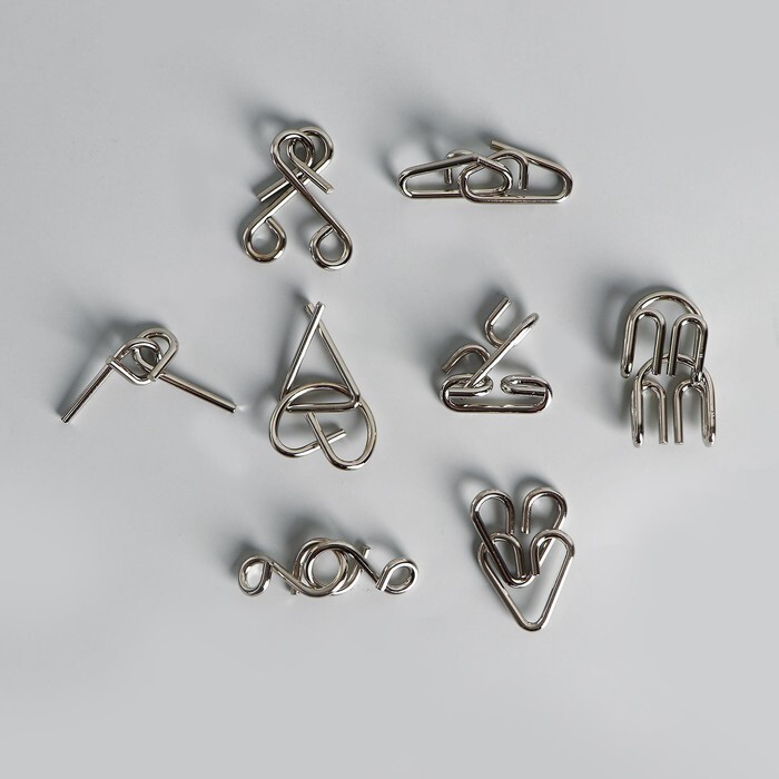 Большой набор задач - лучшая зарядка для ума. Восемь металлических головоломок различаются по сложности и могут стать серьезным вызовом, ведь решение, подчас, найти будет не так уж просто. Но вас ведь не остановят подобные трудности?