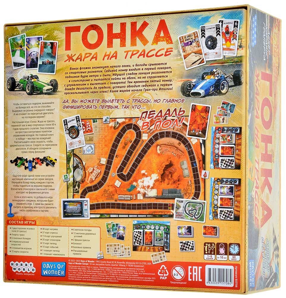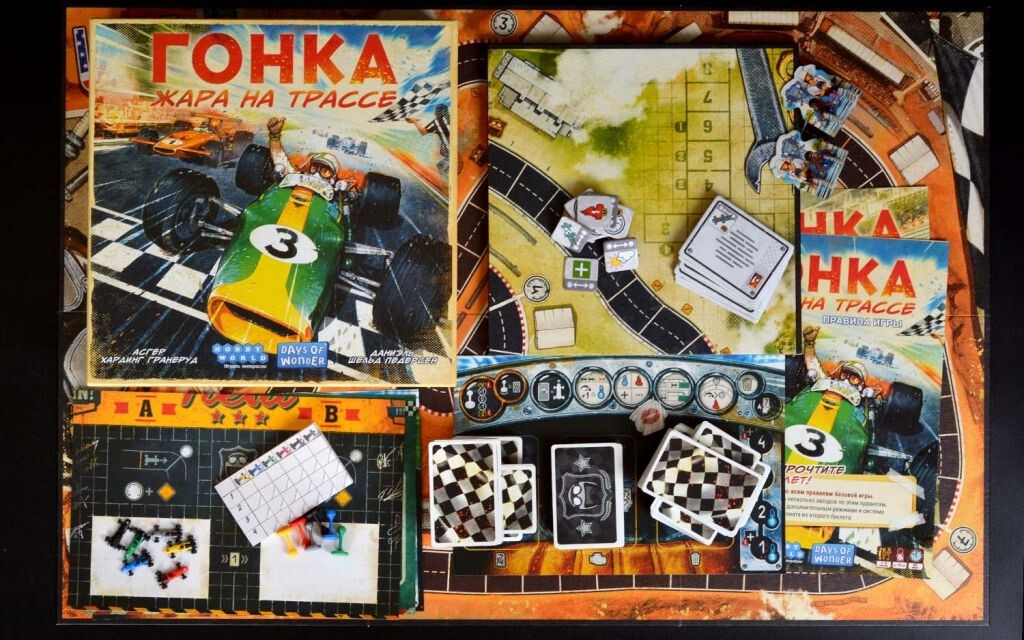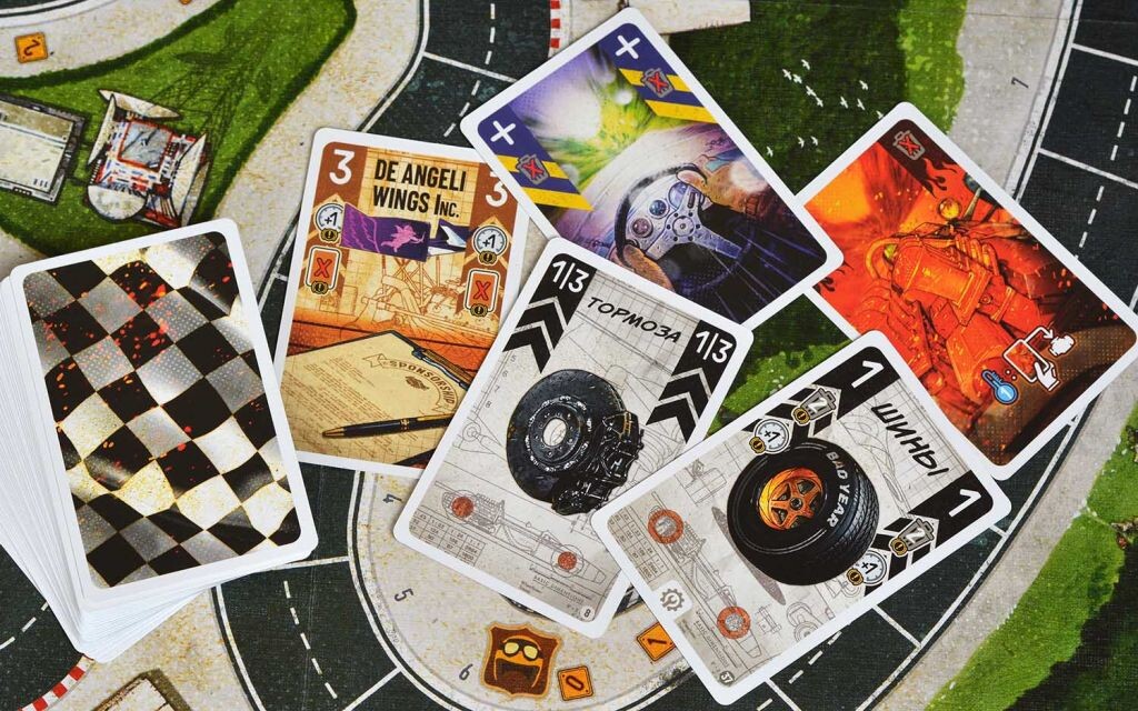 Педаль в пол! В данной игре вашей задачей станет первым пересечь финишную прямую. Выберите машину определенного цвета и возьмите карты с деталями, погодными условиями, и нагревом. Гонки будут проходить при различных условиях, при разной погоде и в разное время суток. Все это может повлиять на ваш успех. Перед каждым заездом вы можете улучшать свой болид, а во время заезда не забывайте следить за показателем скорости и не переборщить с ней, ведь тогда машина перегреется, и преимущество будет потеряно. В этом случае вам может помочь адреналин, который даст отстающему участнику карты для следующего этапа. Кто первый доберется до финиша, тот и станет лучшим гонщиком!
