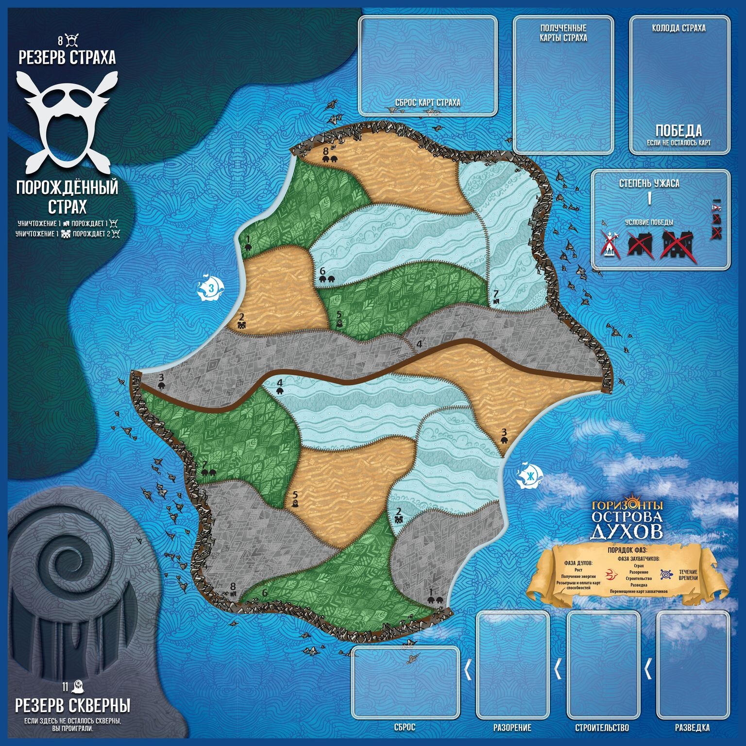 Перед вами упрощенная версия популярной игры для тех, кто давно мечтал познакомиться с первоисточником, но не любит большое количество правил. В роли могущественных древних духов вам предстоит остановить захватчиков, посягнувших на ваш остров. Действуя сообща, участники смогут собирать энергию и тратить ее на мощные способности, а колонизаторы попробуют освоиться на острове, производя разведку и застраивая чужие земли. Кто победит в этом противостоянии?