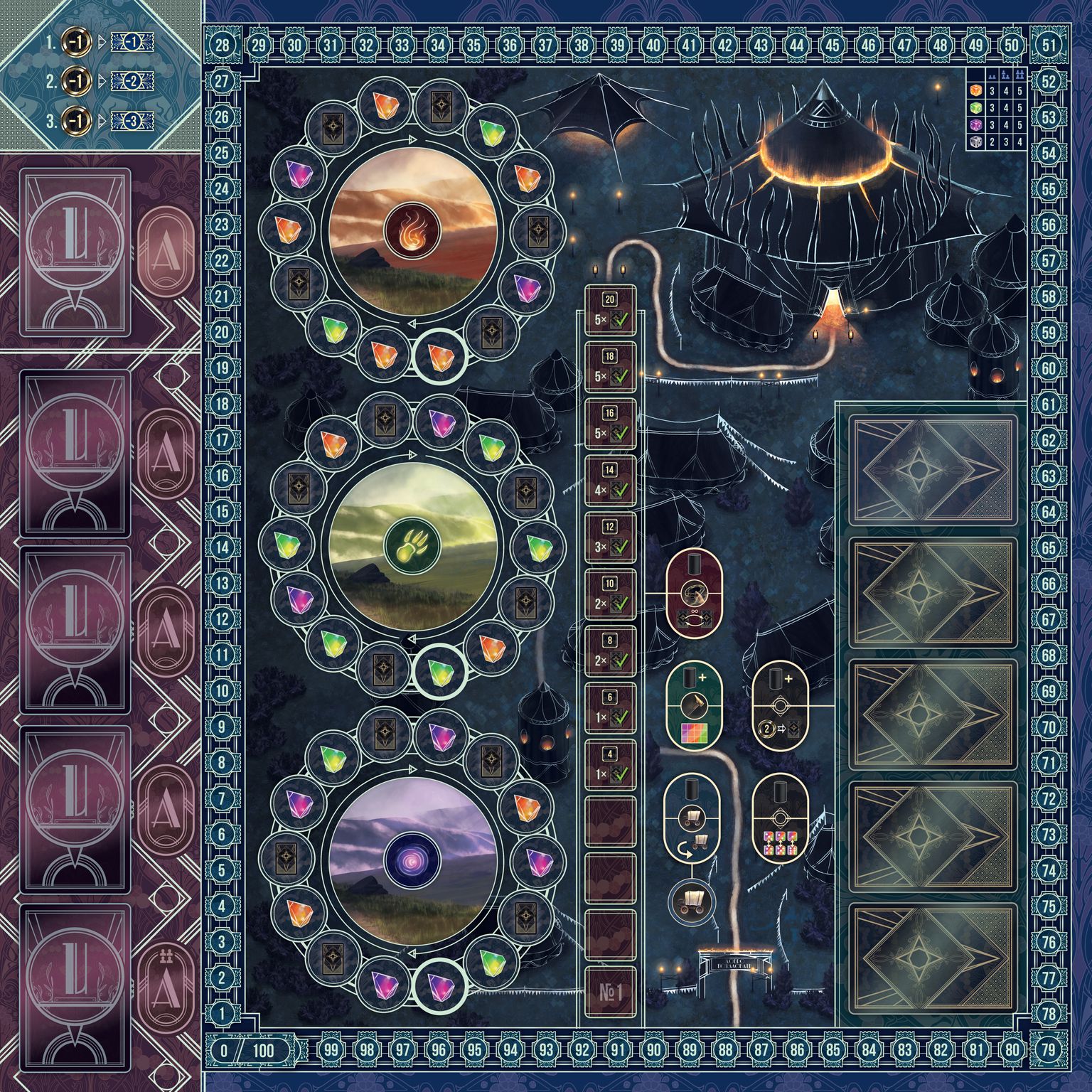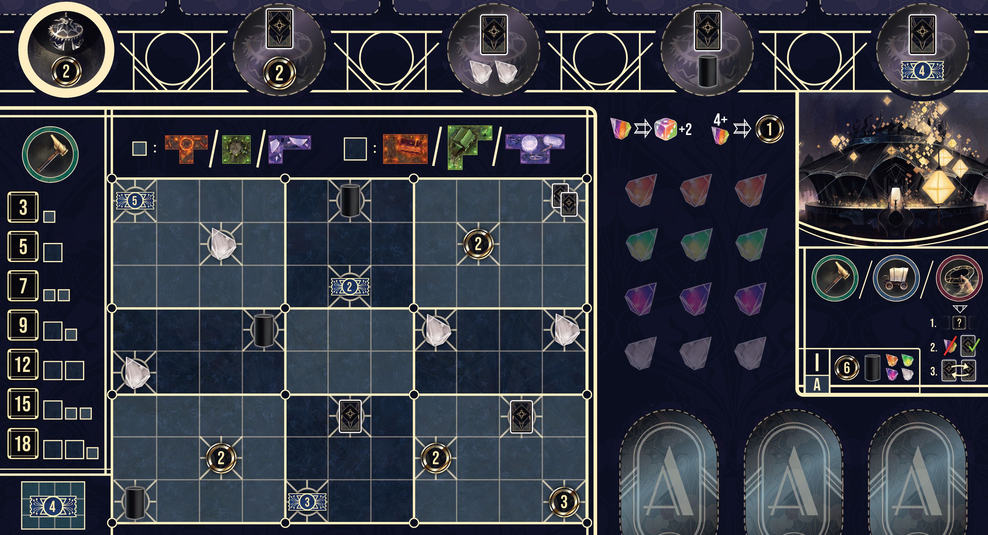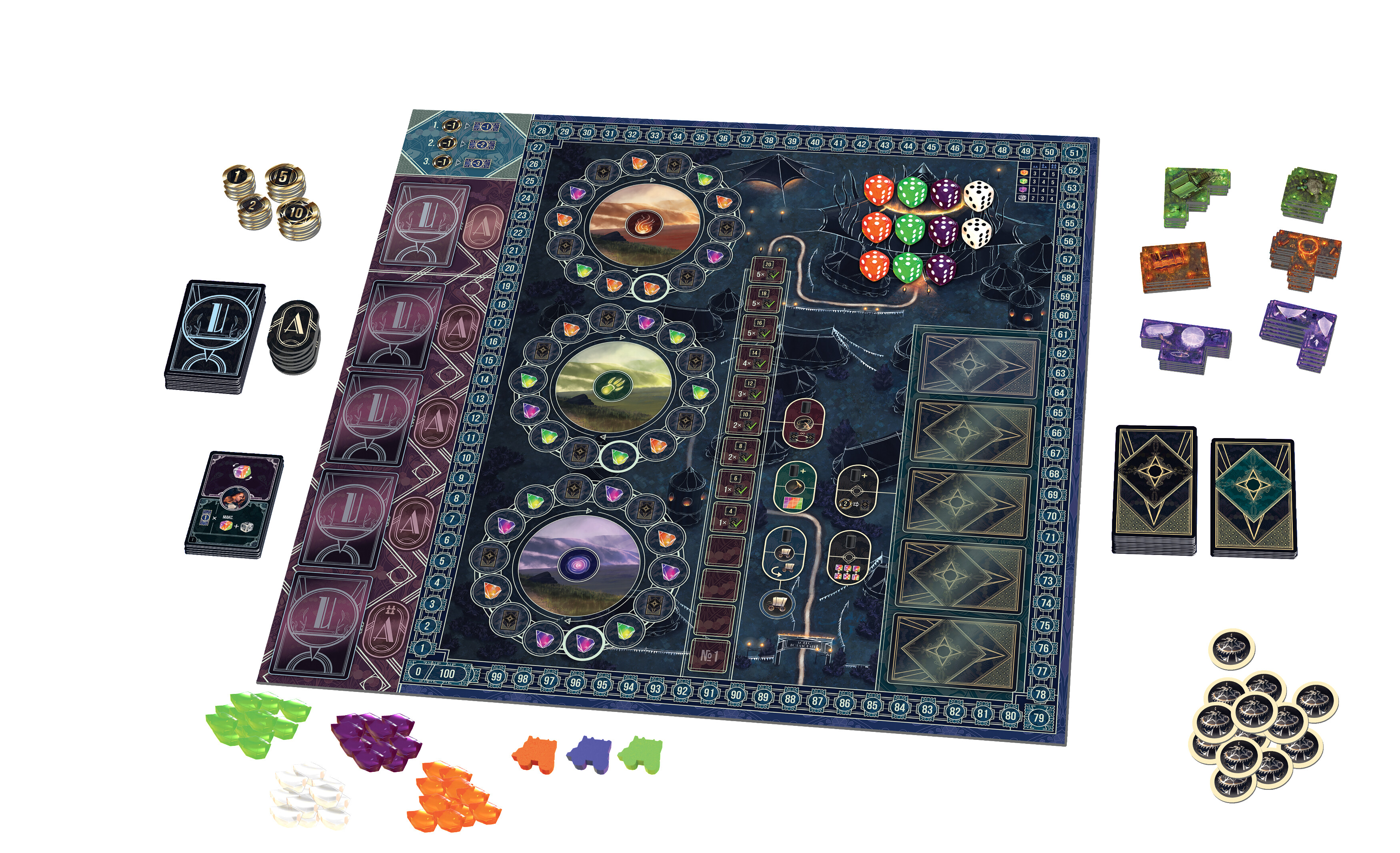 "Грандиозное представление" поставит перед игроками задачу побороться за создание блистательных цирковых выступлений. Найм артистов, расширение территории с помощью специальных блоков и распространение рекламных афиш - лишь малая часть того, что ждет вас в коробке. Сюда же добавьте великолепную рисовку, волшебный мир и минимальное количество случайностей. Уже слышите звон аплодисментов? Пора организовать лучшее представление!
