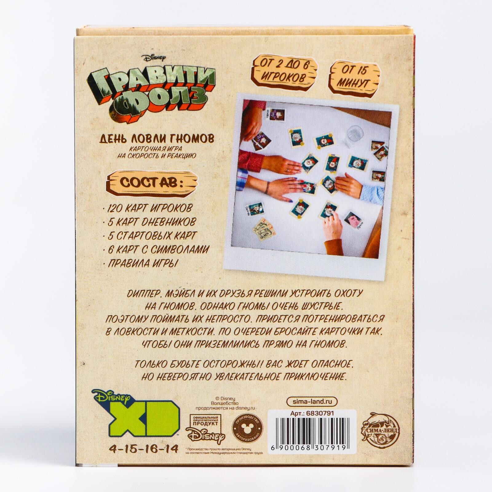 С помощью героев из любимого мультсериала вас ждет увлекательное соревнование! Бросайте карты в центр стола так, чтобы они приземлились на изображения гномов. Если у вас это получится, гном достанется вам. При этом, если вы попадете по карте с другим персонажем или предметом, его свойство тут же будет выполнено. Благодаря этому можно изменить последовательность ходов, получить дополнительного гнома или быстро найти нужный символ. Проверьте свою реакцию и станьте победителем в этой красочной игре для компании!