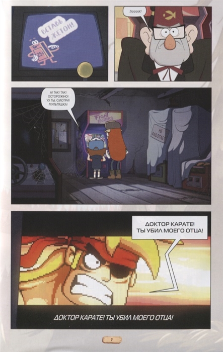 Чем хороши кинокомиксы по любимым сериалам? Тем, что с книгой ты можешь насладиться любимыми эпизодами в другом формате! А значит, увидеть своих героев в другом свете - теперь 10, 11 и 12-я серии первого сезона "Гравити Фолз" в книге кинокомиксов с кадрами из сериала!