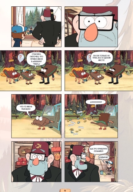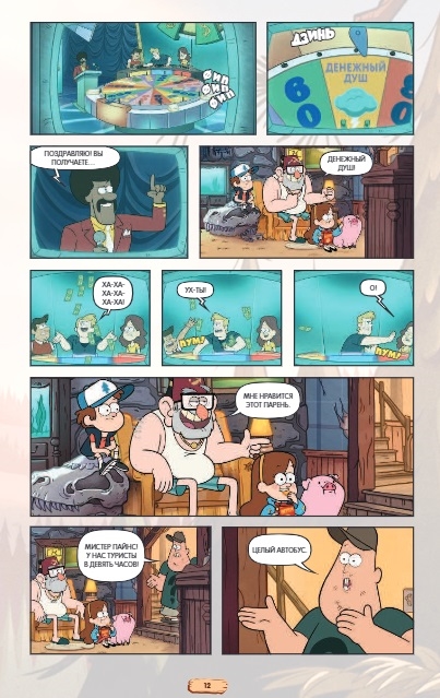 Графический роман "Гравити Фолз" — настоящая находка для любого из десятков тысяч фанатов МЕГАПОПУЛЯРНОГО анимационного сериала, который идет на телеканале Disney. Сюжеты 13, 14 и 15 серий первого сезона в формате комикса порадуют и тех, кто давно и серьезно "подсел" на истории о приключениях Диппера и Мэйбл, и тех, кто только знакомится с ними.