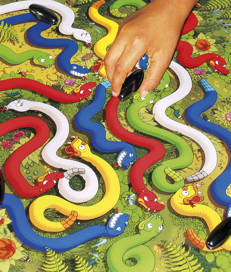 Соберитесь за одним столом и посоревнуйтесь с другими игроками! Участникам предстоит как можно быстрее избавиться от разноцветных яиц гремучих змей, полученных перед началом партии. Бросайте кубик и смотрите, что на нем изображено. В зависимости от выпавшего цвета, выложите змеиное яйцо к соответствующей змее на поле и станьте ближе к победе. Казалось бы, но... Дело в том, что яйца магнитные и притягиваются друг к другу. Если такое произойдет, и яйцо сместится с змеи соответствующего цвета, вам придется взять несколько яиц обратно. Кто первый сможет избавиться от всех предметов на руках, станет победителем!