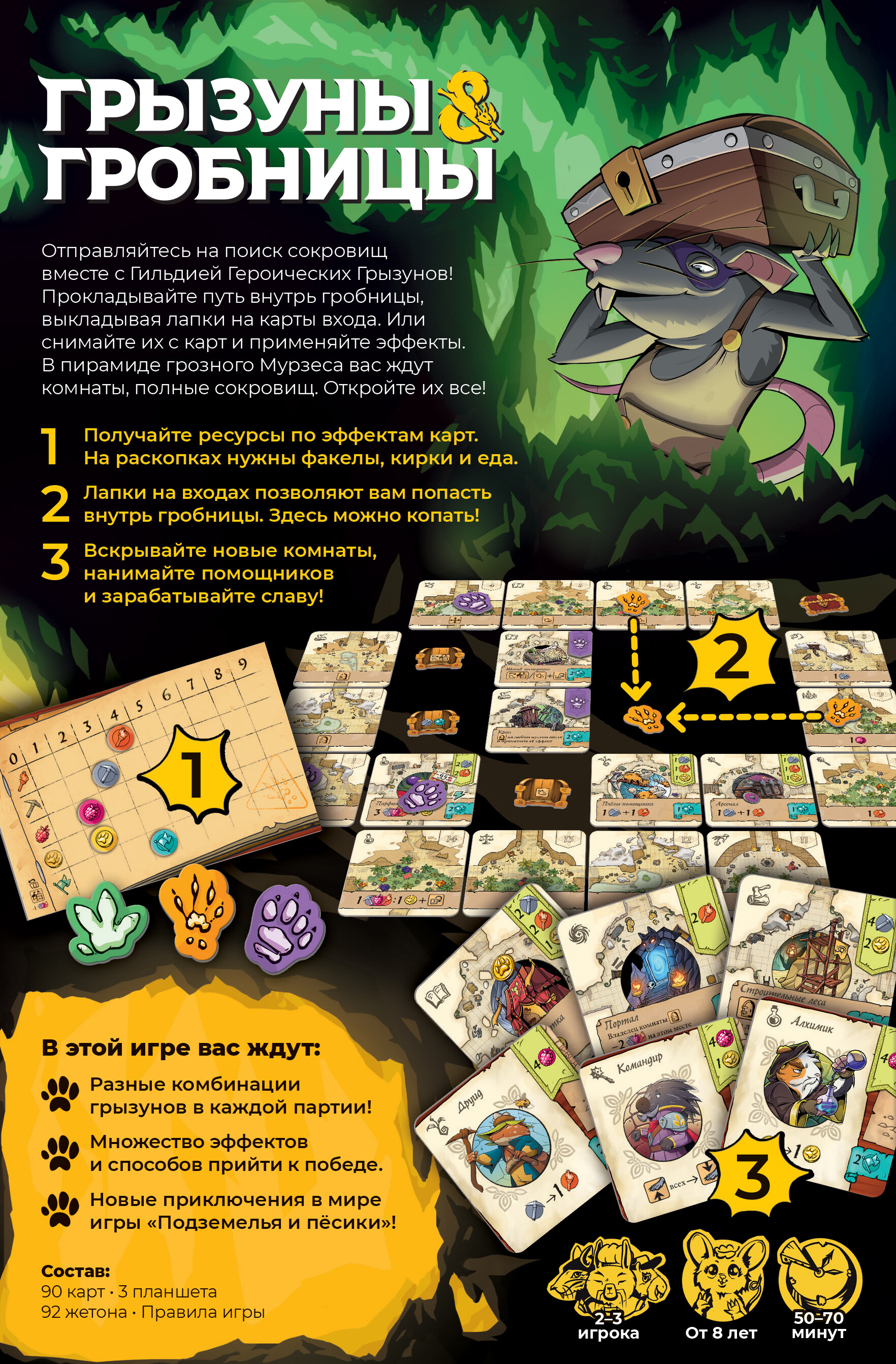 90 карт3 планшета92 жетонаПравила игрыРазмер карт: 69х69 мм (90 шт.)