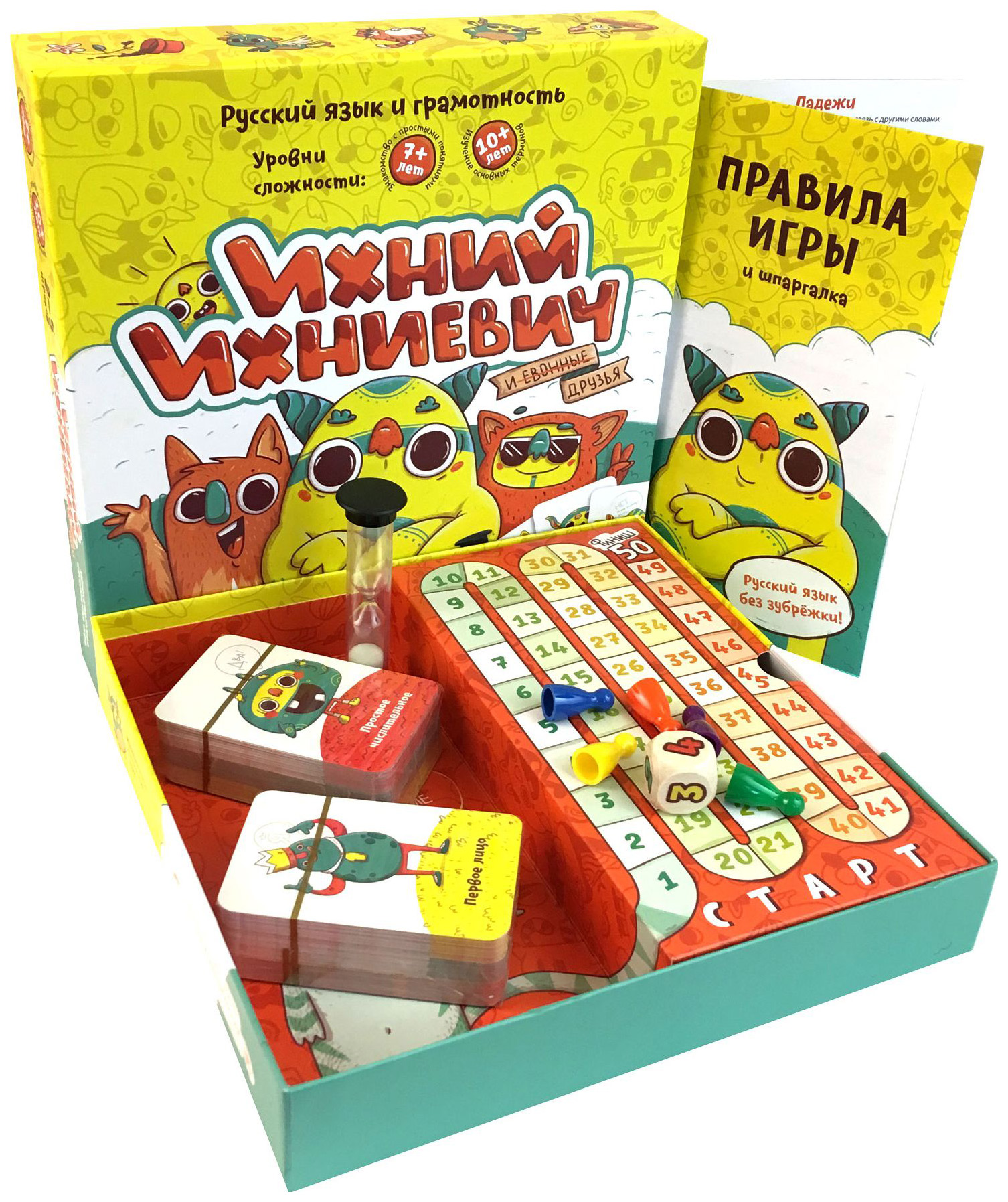 Веселая игра на изучение русского языка! В игре вас встретит красочное игровое поле, карты и песочные часы. Различные термины русского языка будут располагаться на карточках с яркими персонажами, что поможет ребенку быстрее запомнить падежи и склонения. Игроки соревнуются, кто первым дойдет до финиша по полю, а количество ходов определяется количеством фраз, которые говорит участник. Ему нужно произнести фразы, в которых есть термины с двух открытых карт, причем сделать это требуется за 30 секунд. Кто окажется быстрее, тот в конечном итоге и победит! Гибкие правила для разных уровней знаний и режим для одного игрока сделают данную игру еще более интересной и развивающей.