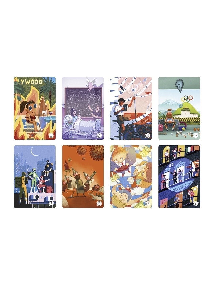 В коробке вас ждут 98 карт, основной темой которых стал непростой 2020-й год. Разные яркие иллюстрации, нарисованные профессиональными художниками, принесут в оригинальную игру еще больше возможностей для ассоциаций. Сможете правильно угадать, какая загаданная карта принадлежит ведущему?