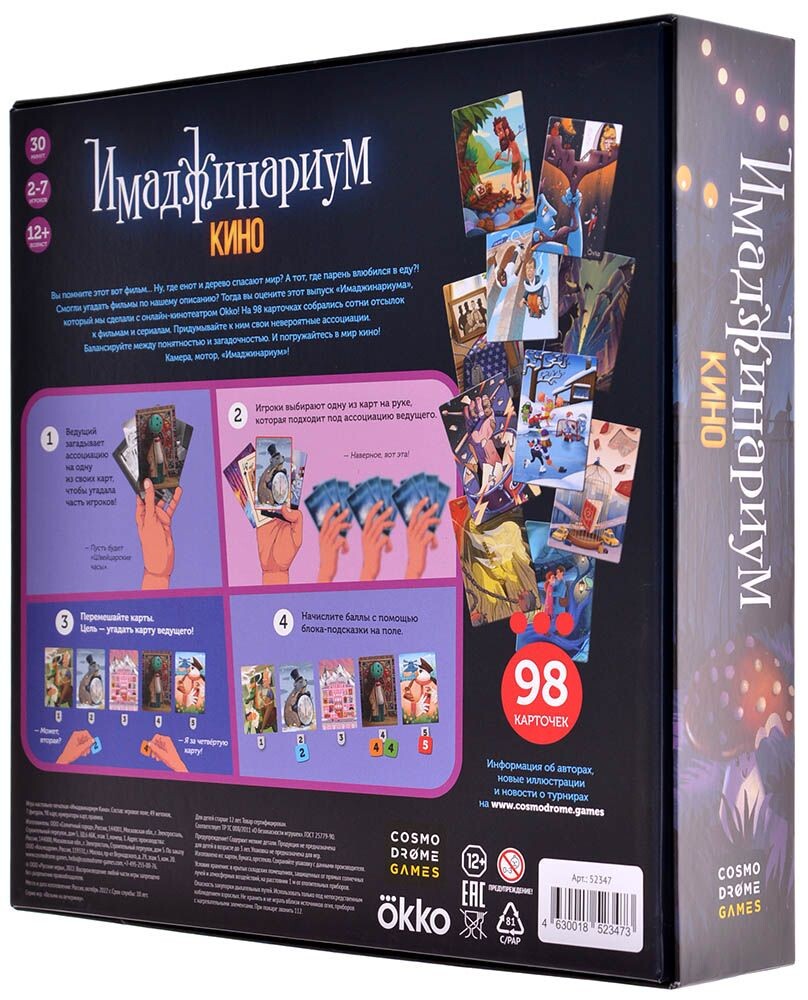 В игре вас ждут девяносто восемь карт с красочными, порой абстрактными иллюстрациями, но содержащими множество отсылок на знаменитые фильмы и сериалы. Каждому из участников раздается определенное количество карт, после чего один из игроков загадывает одну из своих карт, обозначая ее определенной ассоциацией. Выложив карту в центр стола рубашкой вверх, он ждет, пока все остальные выберут свою карту по его ассоциации и положат туда же. Колода в центре перемешивается, открывается, после чего нужно угадать самую первую загаданную карту. Кто сможет это сделать, тот получит призовые очки.