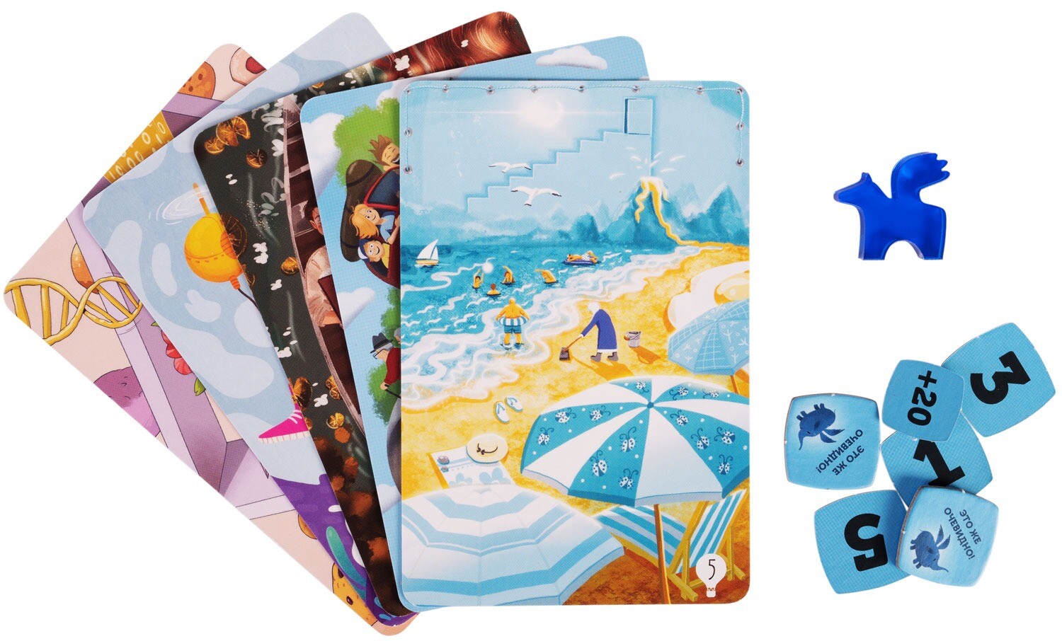 Компактная версия знаменитой игры! Данный выпуск содержит шестьдесят четыре карты с красочными иллюстрациями, которые можно трактовать по-разному. Каждый игрок получает карты на руки, после чего один из них загадывает свою карту, называя ее определенной ассоциацией. Загаданную карту он кладет рубашкой вверх в центр стола. Остальные участники выбираются из своих карт наиболее подходящие под названную ассоциацию, после чего также кладут их в центр стола. Колода в центре перемешивается, открывается, а затем участникам нужно угадать самую первую загаданную карту. Кто сможет это сделать, продвинется по игровому полю. Данный выпуск, в отличие от многих игр серии, подойдет и для двух игроков. Сможете первым добраться до финиша и победить?