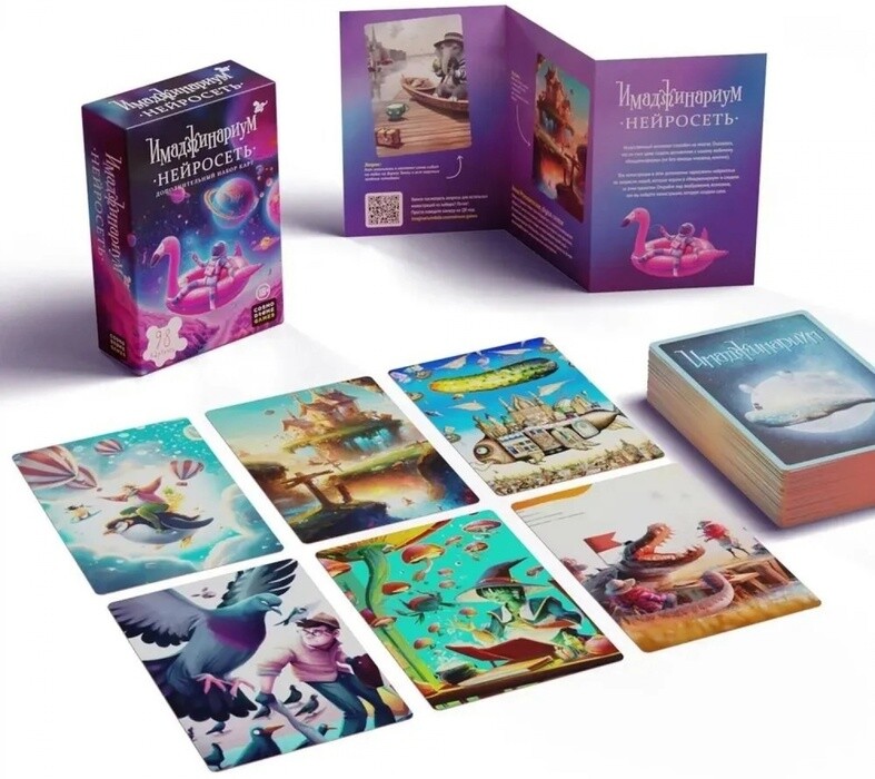 Главной особенностью нового дополнения для популярной игры на ассоциации является разработка с помощью нейросетей. Все иллюстрации на картах разработаны с помощью высоких технологий, столь популярных в последнее время. Девяносто восемь карт с разными иллюстрациями, обозначающие для разных игроков разные эмоции и ощущения, подойдут почти для любого выпуска из знаменитой серии игр и разнообразят привычные партии. Стоит отметить, что в данном выпуске многие картинки более фантасмагоричны, чем обычно, но и простор для их толкования стал только больше! Замешайте эту колоду в оригинальную игру и попробуйте свои силы в определении ассоциаций!