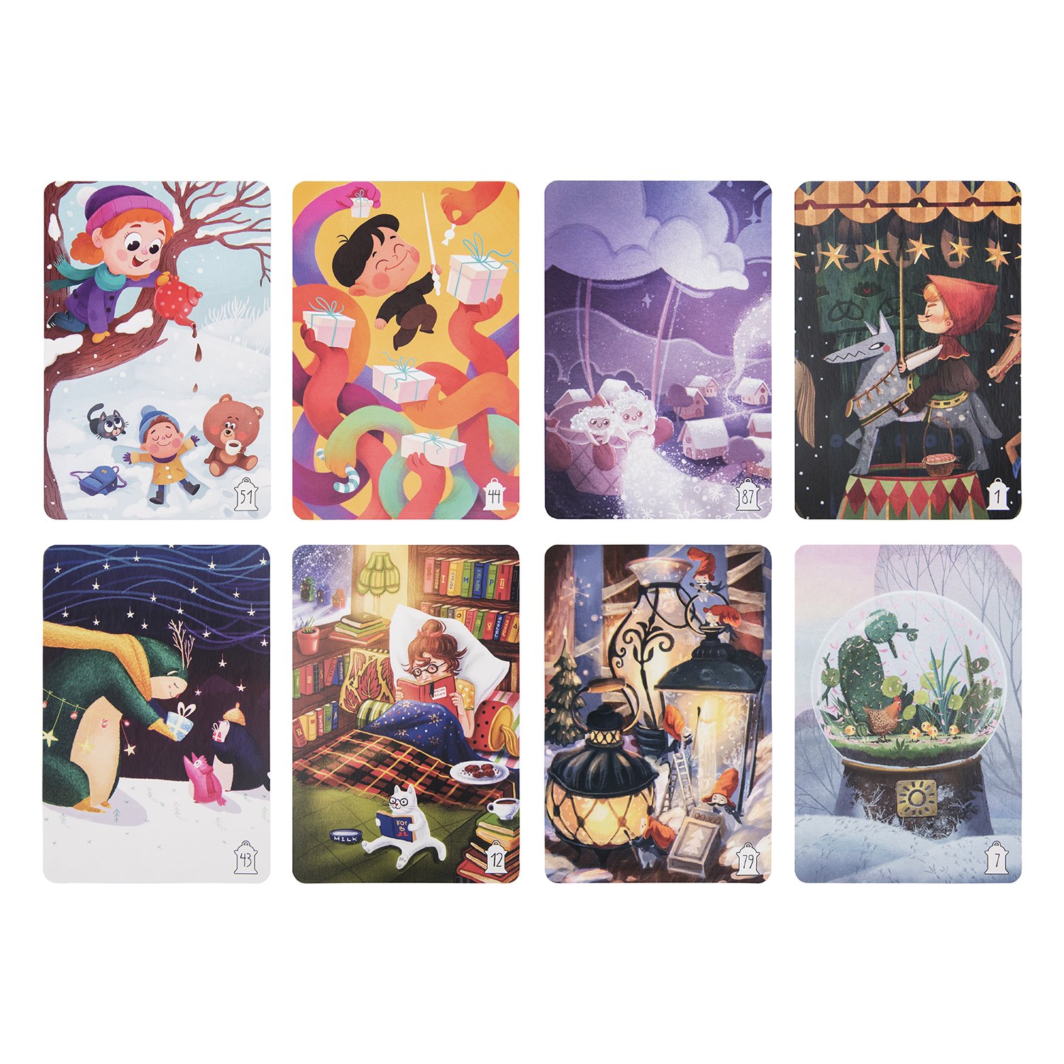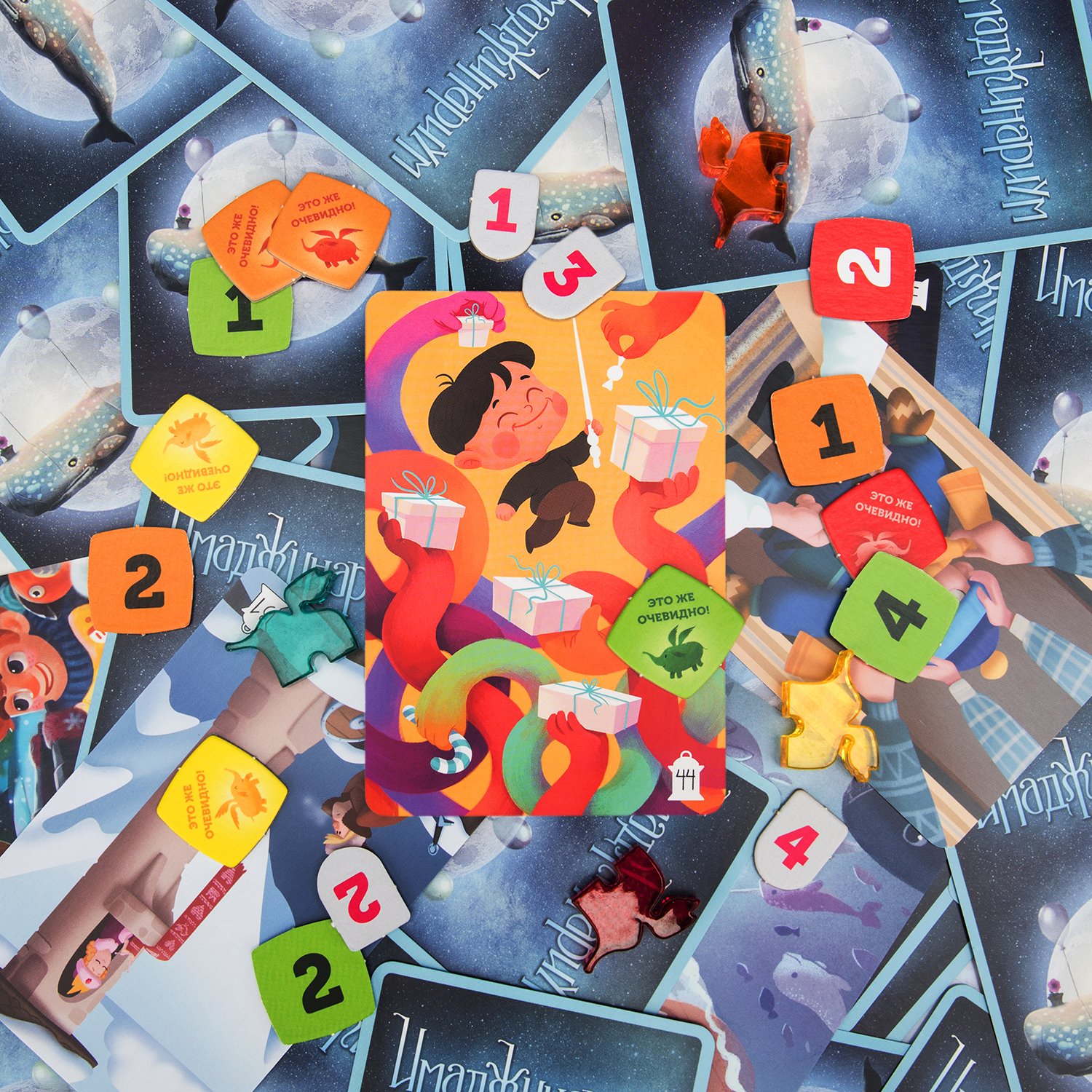 В данной варианте знаменитой игры участников ждут классические правила - угадать, какую карту выбрал по ассоциации другой игрок. Карты в этот раз проиллюстрированы в детской новогодней стилистике и содержат множество рисунков с теплой и милой атмосферой волшебства. Игровое поле в этом издании достается из коробки, поэтому играть станет еще удобнее! Загадывайте слово, выкладывайте подходящую карту в закрытую, а остальные игроки пусть подбирают из своих карт наиболее подходящее под загаданное. Выбранные карты перемешайте, откройте и постарайтесь найти самую первую загаданную карту. Кто сможет это сделать, продвинется по полю.