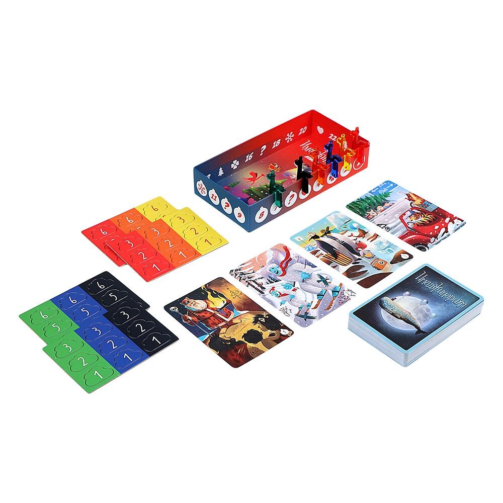 Компактная версия популярной игры на ассоциации содержит новые, доселе не появляющиеся карты с изображениями, веселыми и абстрактными, новогодними и красочными. Получив карты на руки, один из участников загадывает ассоциацию по своей карте и кладет ее на стол взакрытую. Остальные выбирают из своих карт наиболее подходящую под загаданное, после чего нужно найти самую первую загаданную карту. Кто справится с этой задачей, продвинется по краям поля, нарисованного внутри коробки.