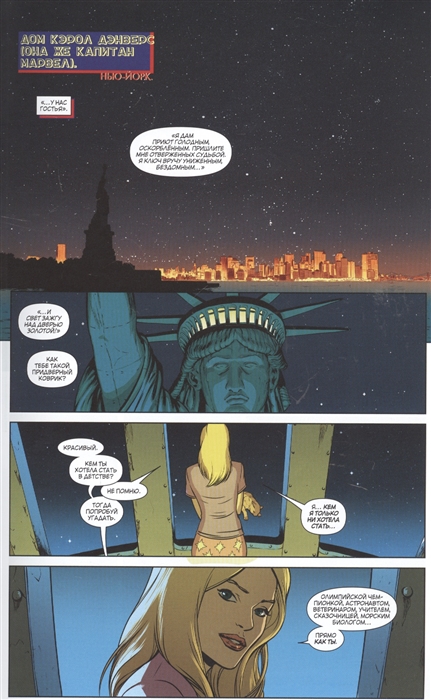Долгое время Капитан Марвел, не смотря на её богатую биографию, находилась на вторых ролях — до тех пор, пока за её сольную серию в 2012 не взялась Келли Сью ДеКонник и не делла её звездой вселенной Marvel. В первый том “Выше, дльше, быстрее, больше” вошли выпуски #1-6, нарисованные художником Дэвидом Лопесом.