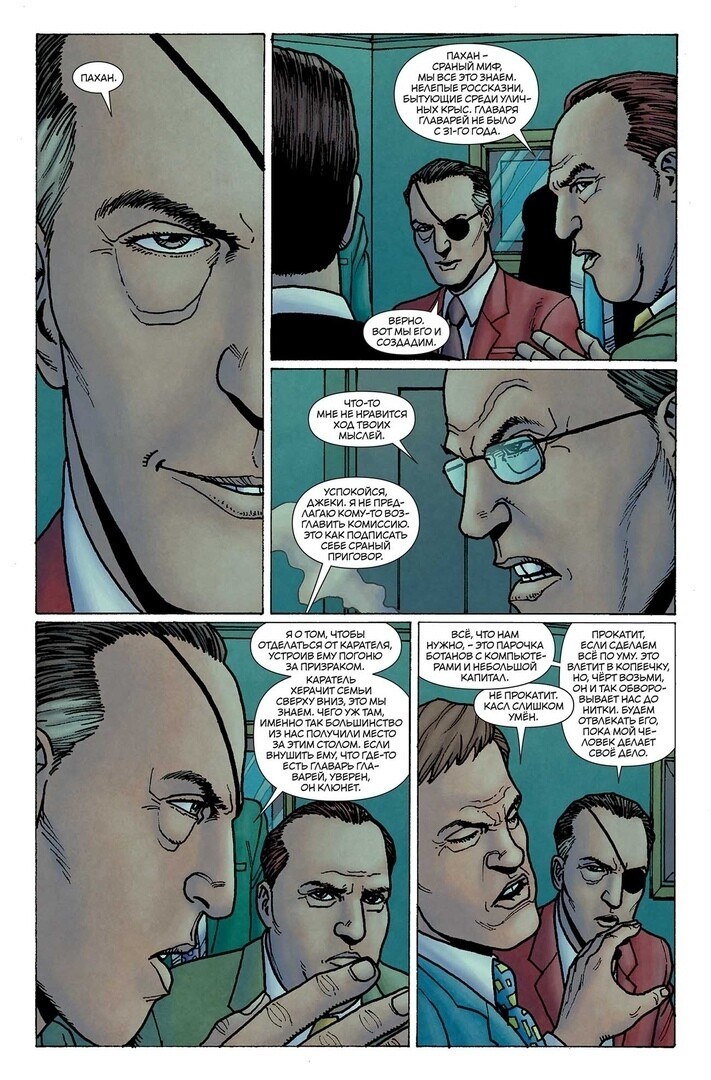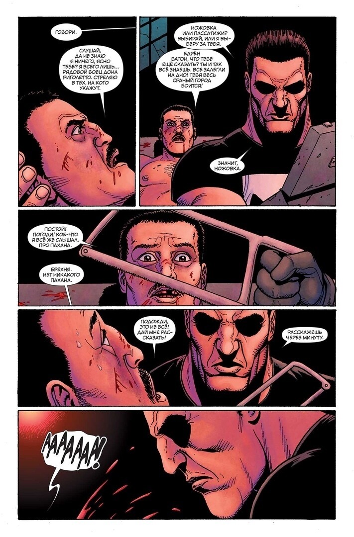 Мафия устроила Фрэнку Каслу ловушку, превратив мелкую сошку Уилсона Фиска в мифического Пахана и натравив на него Фрэнка. Однако Фиску новая должность пришлась по душе – настолько, что ради неё он готов убить своих боссов. И вот уже Каратель втянут в войну: ему предстоит один на один столкнуться со смертельной угрозой и решить, насколько далеко он готов зайти, чтобы покончить с Паханом! Противостояние с грязными копами, схватка с наёмниками Пахана Меченым и Электрой и тюремный срок – так низко Фрэнк Касл ещё никогда не опускался. Но это лишь означает, что Фрэнку больше нечего терять, в чём король преступности скоро сам убедится! Жуткая история о Карателе Джейсона Аарона собрана целиком и без купюр в одном огромном томе!