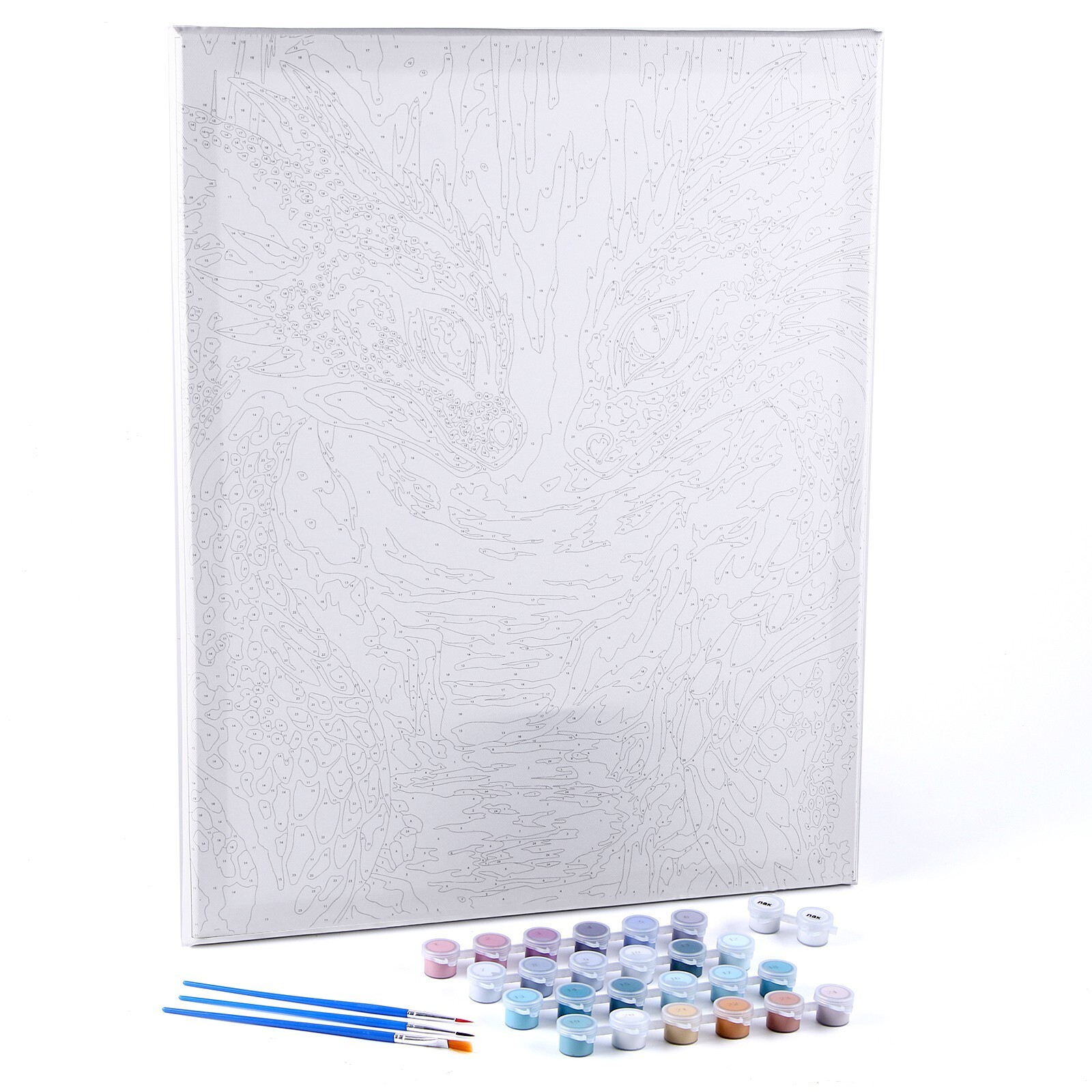 Особенностью картины по номерам является то, что изображение уже нанесено на холст, но не закрашено. В комплекте вы найдете набор кистей и красок, благодаря чему сможете легко и просто создать красочное изображение с драконами разных цветов!