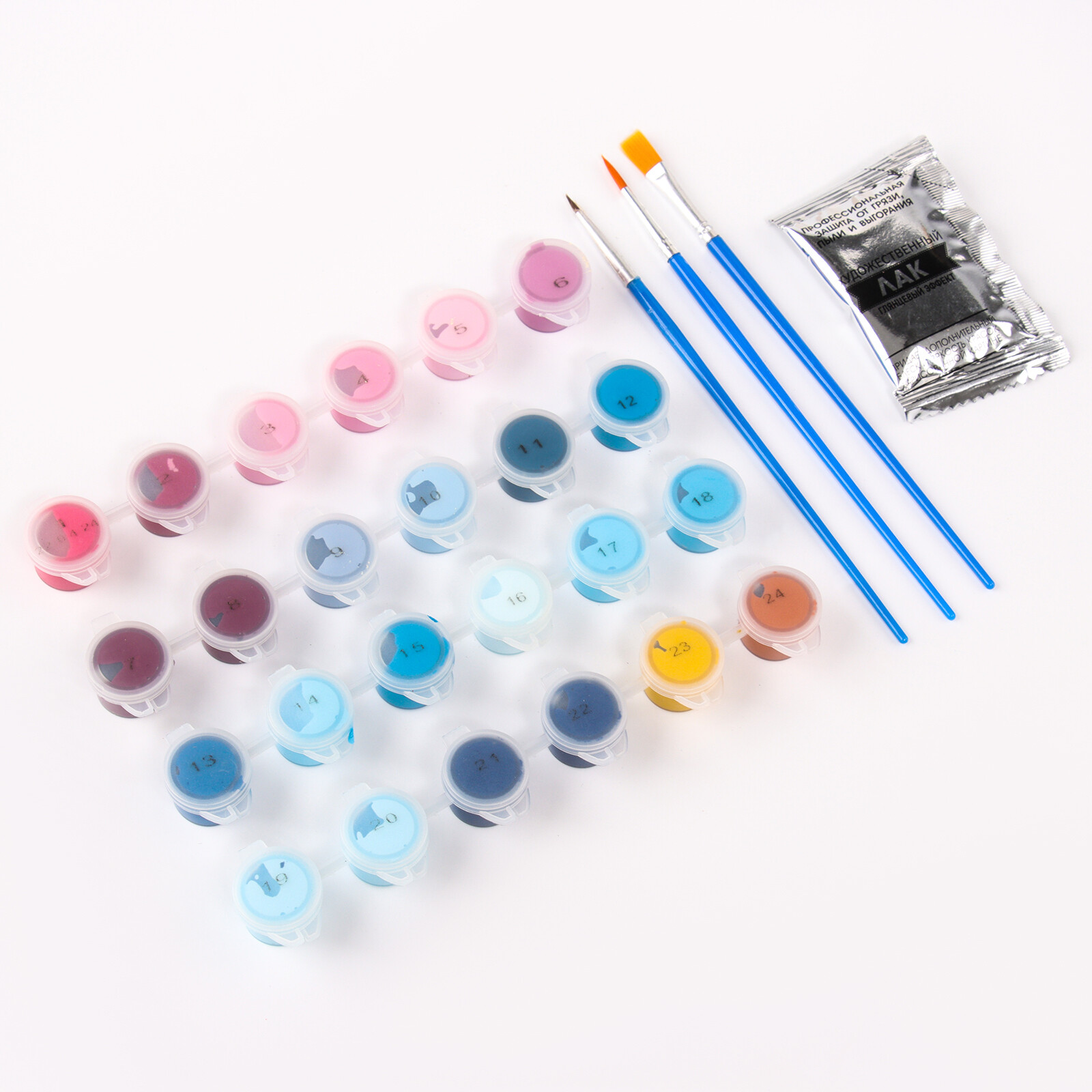 Картину по номерам вам остается только закрасить, ведь на ней указано, какой цвет на какой участок нужно нанести. В наборе вы найдете все необходимое - большой холст, а также набор кистей и красок.