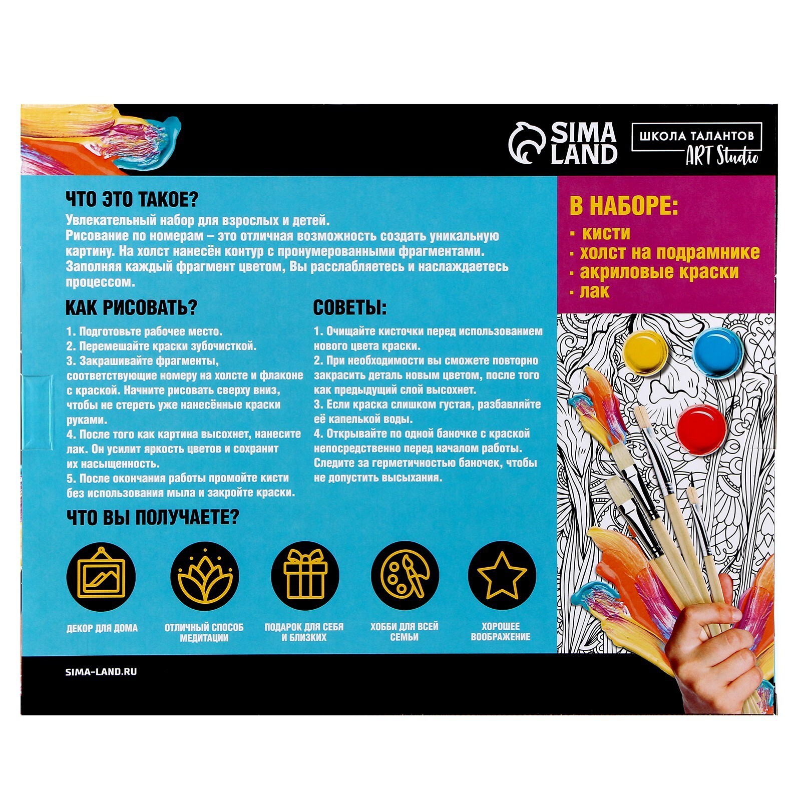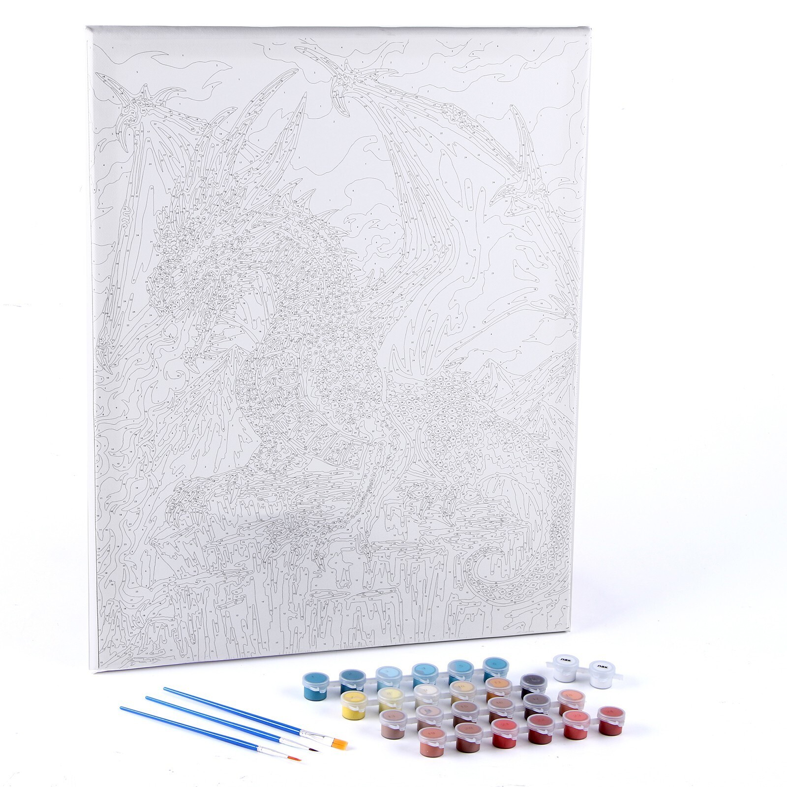 С данным набором вы легко сможете почувствовать себя настоящим художником! В наборе вы найдете холст, на котором уже есть изображение, а вам остается только раскрасить его. В коробке вас ждут краски и кисти, благодаря которым вы сможете создать красочную картину с изображением грозного дракона, испускающего огонь.