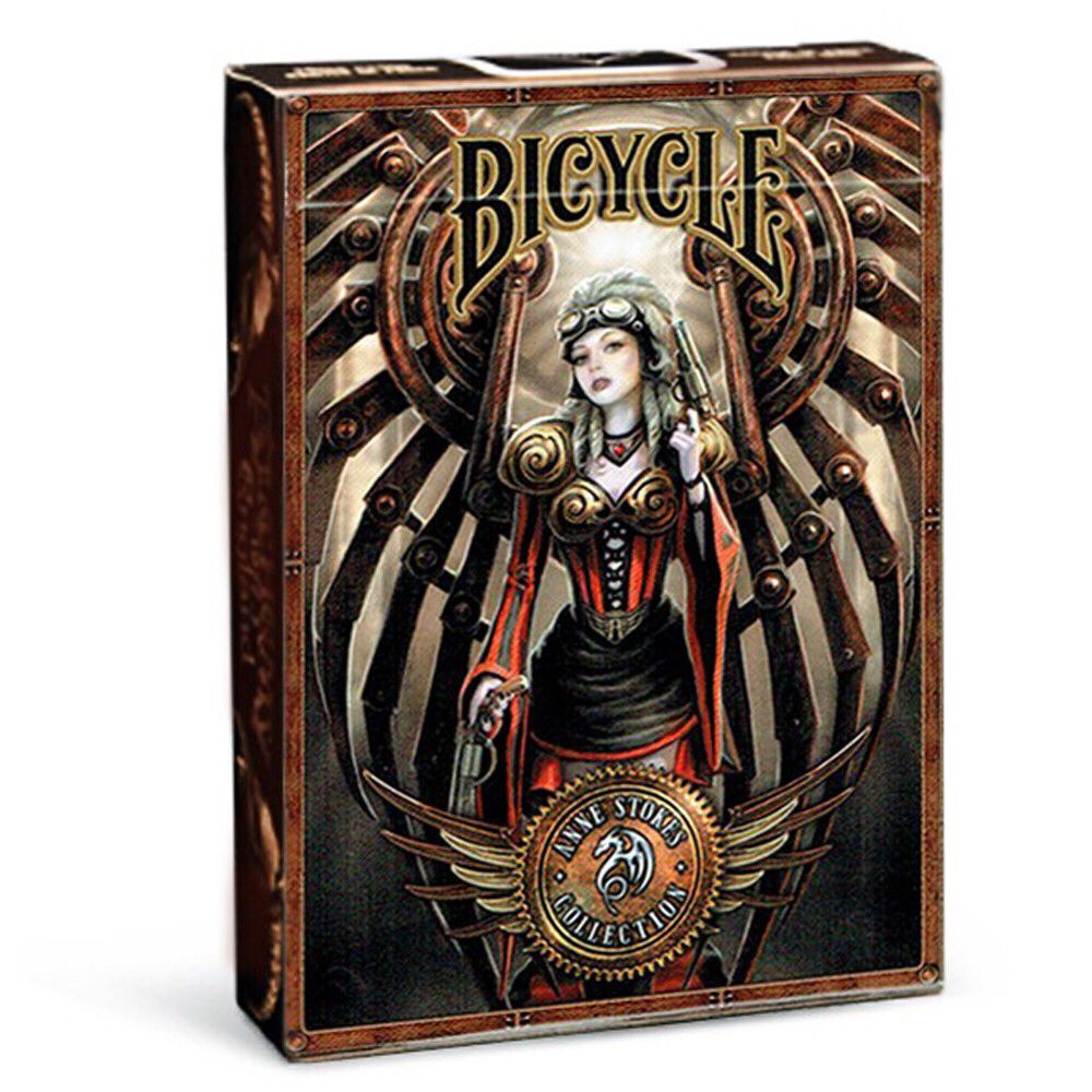 Перед вами колода высококачественных покерных карт Bycicle, обладающих уникальным визуальным стилем. Знаменитая художница Энн Стоукс смешала фэнтези и стимпанк, создав потрясающие иллюстрации, прорисованные до мелочей. Большая упругость и отсутствие скольжения карт порадуют любителей покера и поспособствуют большому количеству партий.