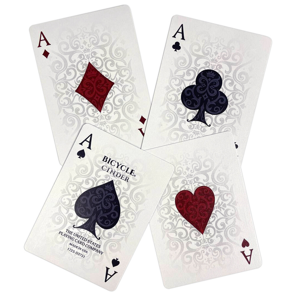 Типичная колода BICYCLE (Poker-standard Type 808) представляет собой стандартную колоду карт, состоящую из 52 традиционных англо-американских игральных карт, двух джокеров, информационной карты и карты, описывающей покерные ряды. Как и в большинстве колод, первой стандартной картой колоды является уникально стилизованный Пиковый туз.