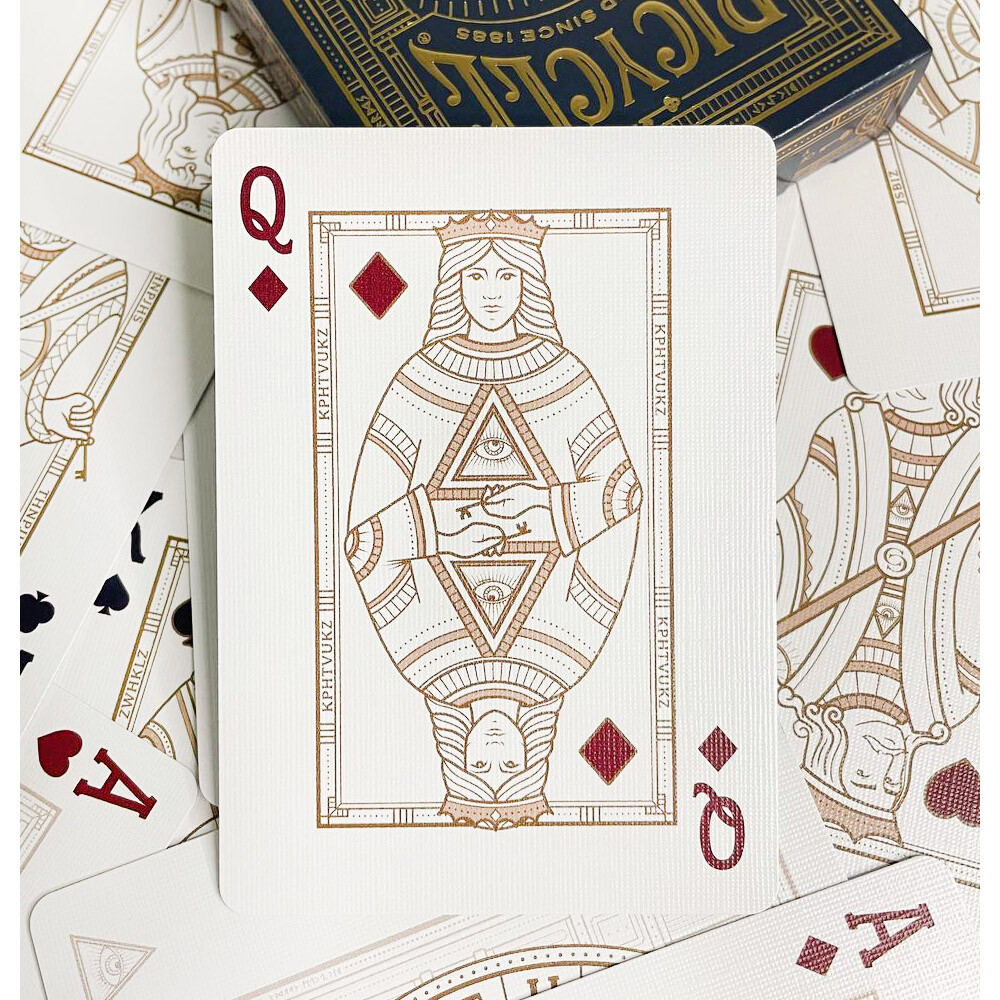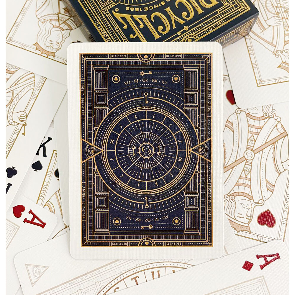 Типичная колода BICYCLE (Poker-standard Type 808) представляет собой стандартную колоду карт, состоящую из 52 традиционных англо-американских игральных карт, двух джокеров, информационной карты и карты, описывающей покерные ряды. Как и в большинстве колод, первой стандартной картой колоды является уникально стилизованный Пиковый туз.
