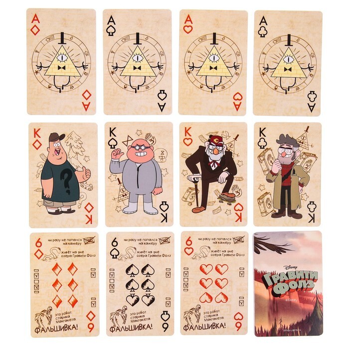 Колода карт изготовлена из картона и оформлена в стиле знаменитого мультсериала, заслужившего любовь и почитание. На лицевой стороне карт вы встретите множество любимых и знакомых героев. Данная колода подойдет для большого количества настольных игр и развлечений.