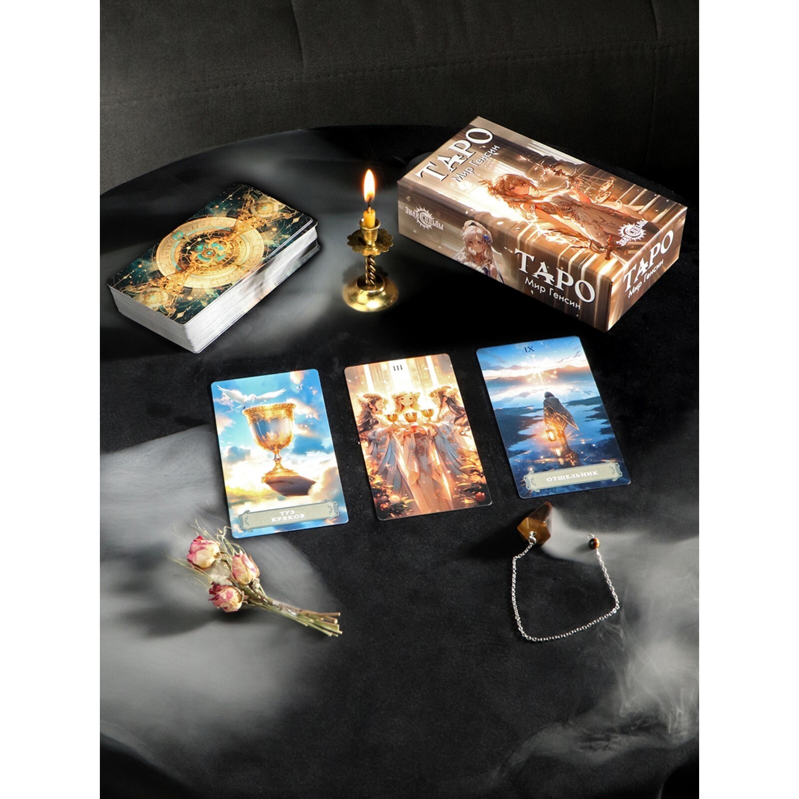 Колода карт таро предназначена для гадания. Данный вариант колоды выполнен в аниме-стилистике и содержит семьдесят восемь карт с различными изображениями и значениями. Помимо карт, в коробке вы найдете удобный мешочек для транспортировки.