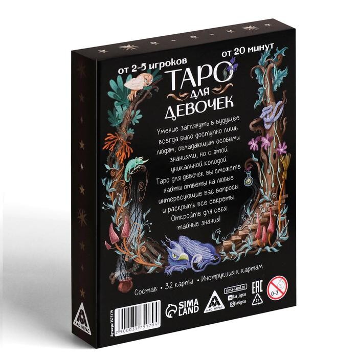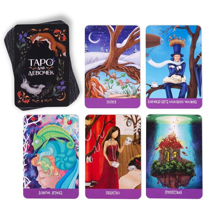С помощью данного красочного набора вы сможете заняться гаданием. Выкладывайте карты и трактуйте их символы, получая информацию о том, что ждет вас впереди. Помимо карт с великолепным оформлением, в коробке вы найдете инструкцию по трактовке и раскладу, с помощью которой легко сможете освоить гадание.