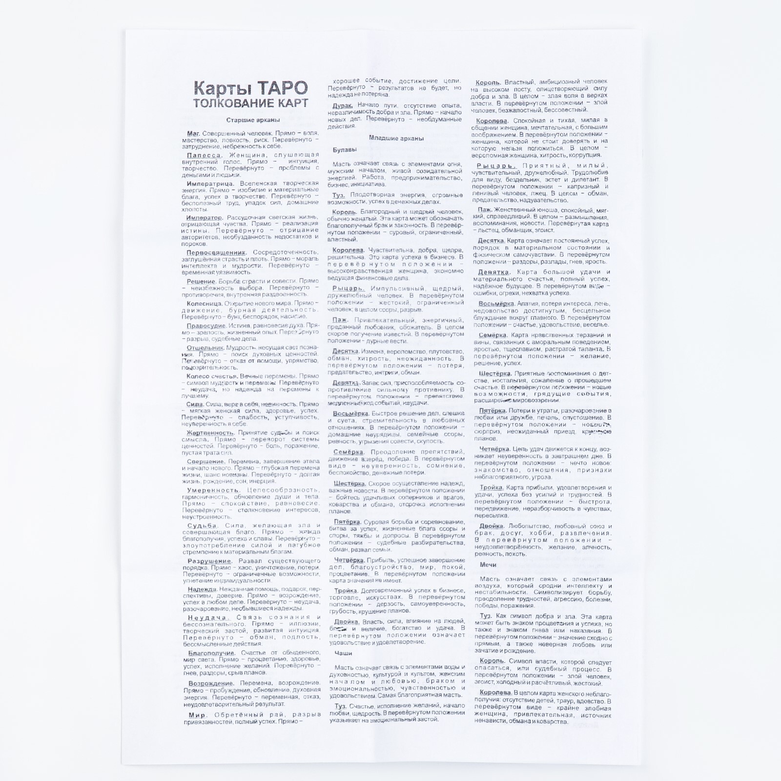 Красочная колода карт таро предназначена для гадания. Подразделяясь на арканы и представляя собой различные изображения и символы, карты помогут вам найти ответы на тревожащие вопросы и, возможно, подскажут, что делать дальше. В коробке вы так же найдете удобную инструкцию по раскладу.