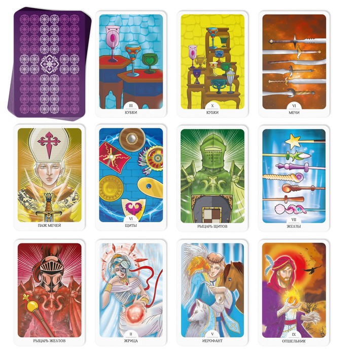 Карты таро предназначены для гадания и могут многое рассказать о вашем будущем. В коробке вы найдете семьдесят восемь карт с великолепным оформлением, а также инструкцию, благодаря которой можно легко истолковать ту или иную выложенную карту.