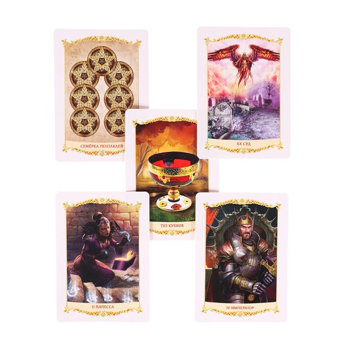 Данная колода предназначена для гадания и поиска ответов на поставленные вопросы. Картонные карты имеют различные символы, расклад по которым может приоткрыть вам завесу тайны над будущим. Иллюстрации выполнены в роскошном фэнтезийном стиле, а также в коробке вы найдете инструкцию с определением основных раскладов.