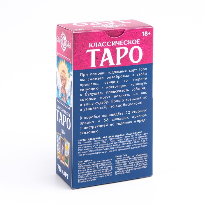 Узнайте, что ждет вас в дальнейшем! Данный красочный набор предназначен для гадания. Карты имеют разные изображения и значения, и их расклад можно истолковать по-разному. В коробке вы найдете инструкцию, с помощью которой вы легко сможете понять значения тех, или иных карт.