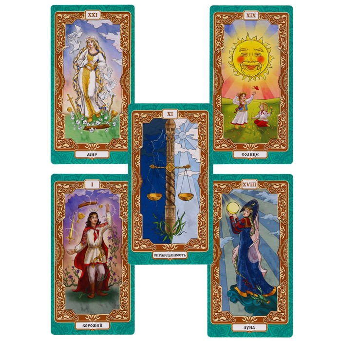 Колода карт таро предназначена для гадания и поможет узнать ответы на многие вопросы о вашей судьбе. В комплекте вы найдете инструкцию по основным раскладам семидесяти восьми карт. Оформление выполнено в славянской тематике.