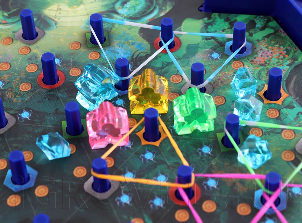 В данной увлекательной настольной игре вам предстоит посоревноваться со своими соперниками в захвате территорий. Перед вами будут 24 ярких и красочных игровых поля, правила на которых будут меняться, что вынудит вас менять и свою тактику. Исследование сказочных джунглей, древних руин и фантастических территорий будет происходить с помощью небольших резинок, которыми вы объединяете объекты на поле. Кто станет лучшим исследователем и получит больше сокровищ?