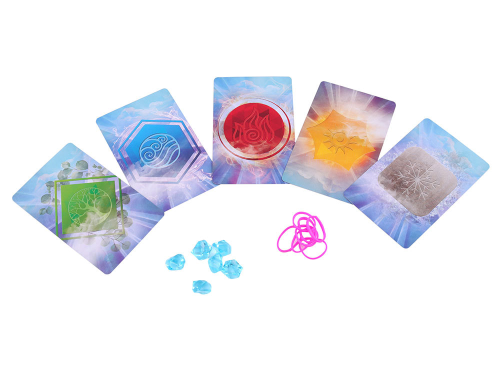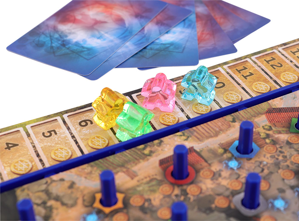 3D основа, 12 сменных двусторонних игровых полей, 50 карт пяти разных цветов, 100 резинок 4 разных цветов, 50 кристалликов энергии, 4 маркера игроков 4-х разных цветов, 1 маркер раундов, 1 счетчик, правила игры.