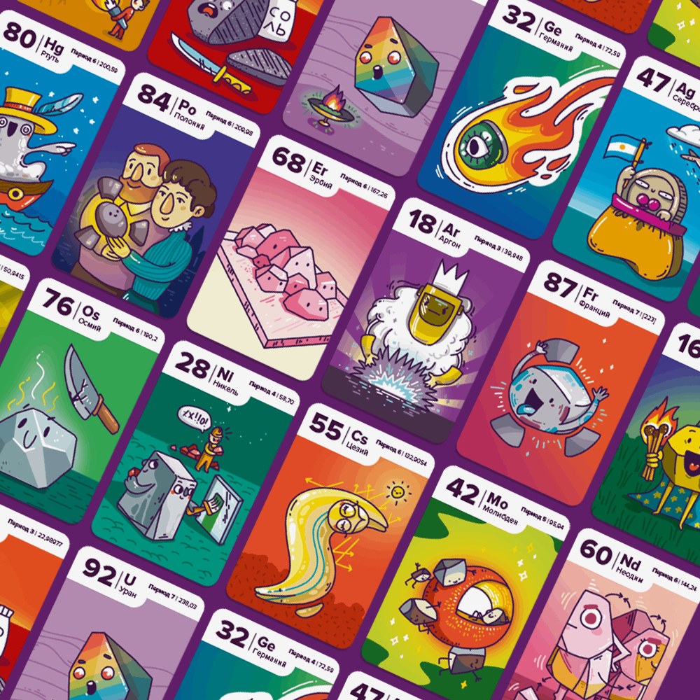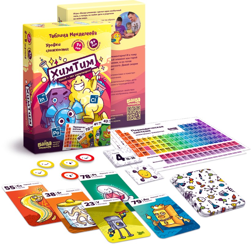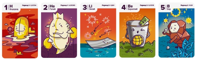 Данная игра сильно поможет ребенку подготовиться к столь важному учебному предмету. Ярко иллюстрированные карты игроки выкладывают по в ряд, стараясь делать это по возрастающей последовательности элементов и забирая карты в добычу. Благодаря рисункам на картах, ребенку будет легко запомнить тот или иной элемент и его расположение в периодической таблице. При желании, вы можете попробовать усложненный вид правил, в котором выложенные карты будут иметь свой номинал для получения комбо-очков.