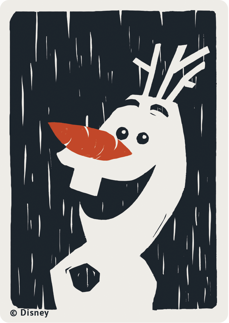 Данная игра, основанная на знаменитом мультфильме, содержит карты с изображениями снеговика и карты заданий. Олаф бывает в разных позах и на разном фоне, и игрокам нужно постараться запомнить все детали карты за определенное время. После этого карты закрываются и открываются задания, по которым предстоит собрать, например, танцующего снеговика, или карты с осенним фоном.