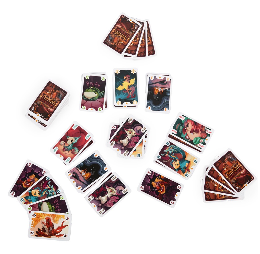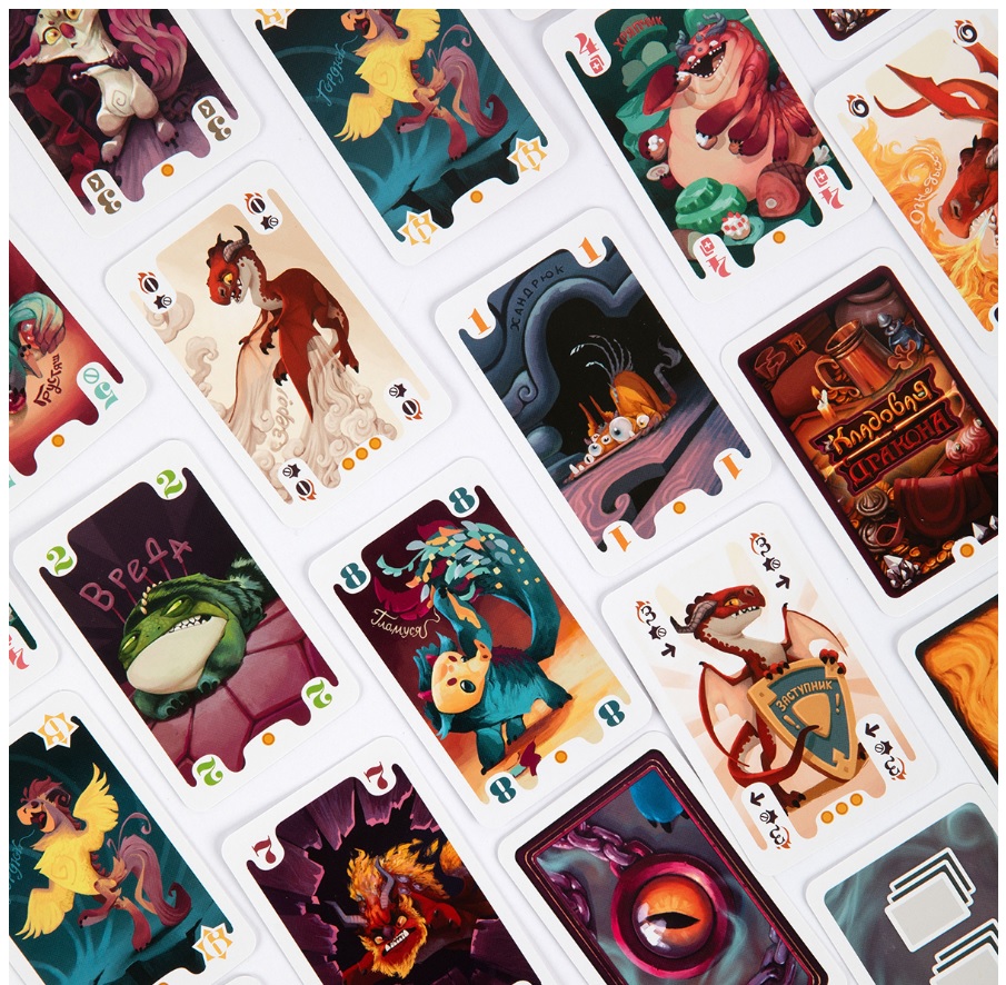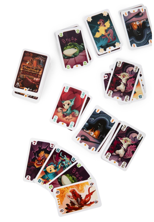 - 72 карточки злыдней- 24 карточки драконов- 14 карточек уловок и помех- правила игрыРазмер карточек: 85х55 мм