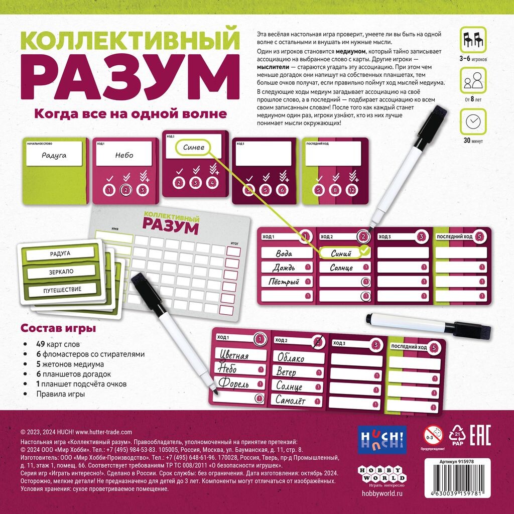 Данная настольная игра проверит это - один из компании игроков станет ведущим и загадает слово, а остальные попытаются угадать, что он имеет в виду. Чем меньше вопросов было задано, тем больше получит победных очков игрок, который отгадает правильно. После этого ведущий загадает второе слово, которое будет являться ассоциацией на первое. Таким образом, после нескольких слов, участник загадает слово, которое должно являться ассоциацией на все предыдущие. Получится ли у вас раньше остальных отгадать то, о чем думает ведущий? Тот из участников, кто сможет набрать наибольшее количество очков, станет победителем!