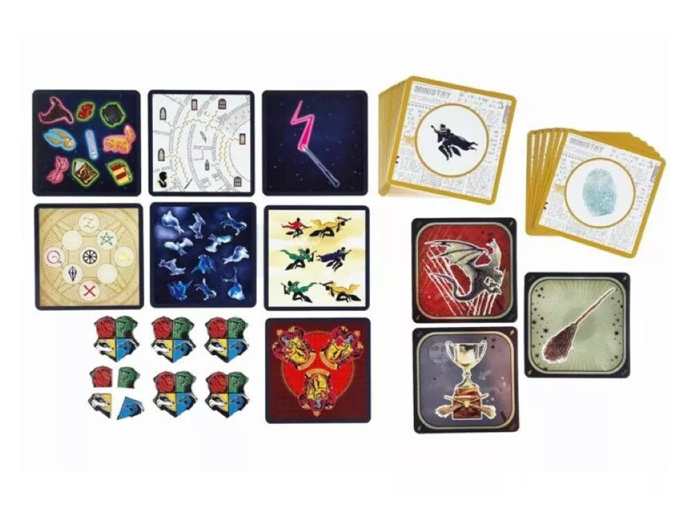 24 фишки факультета (по 6 фишек каждого факультета: Гриффиндор, Слизерин, Пуффендуй и Когтевран),