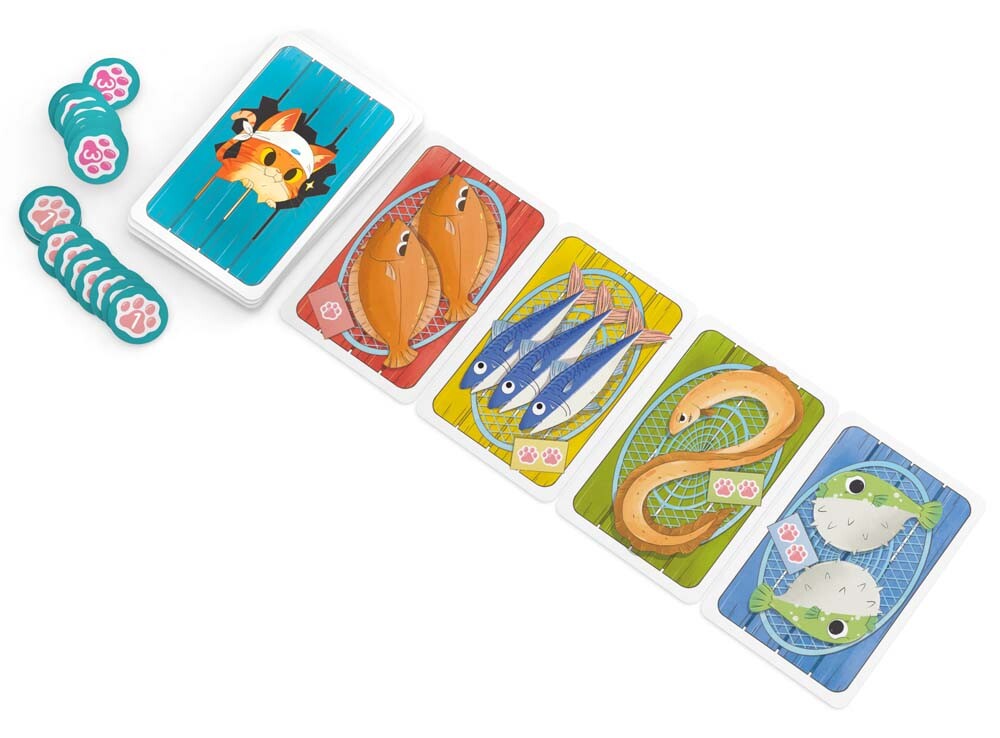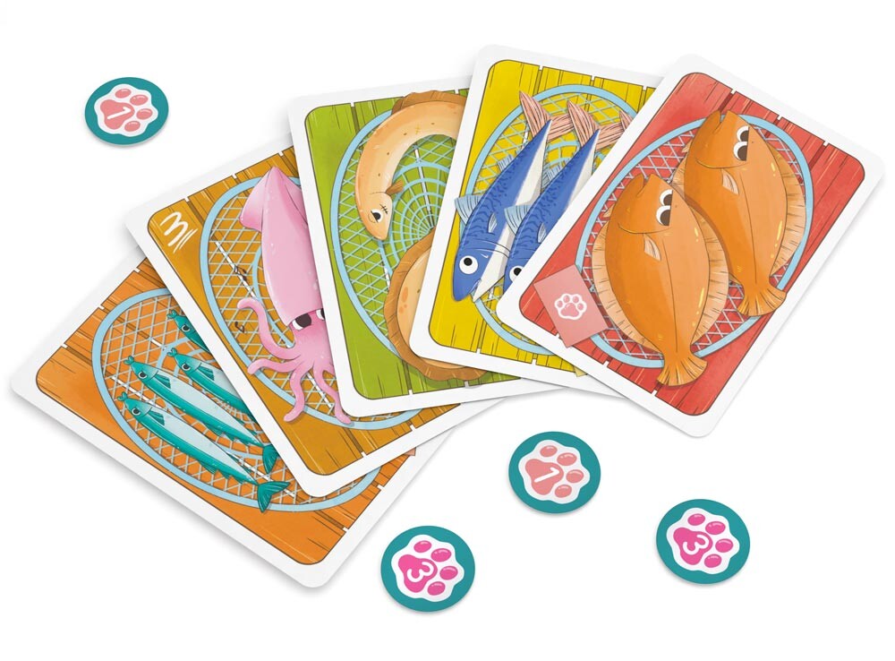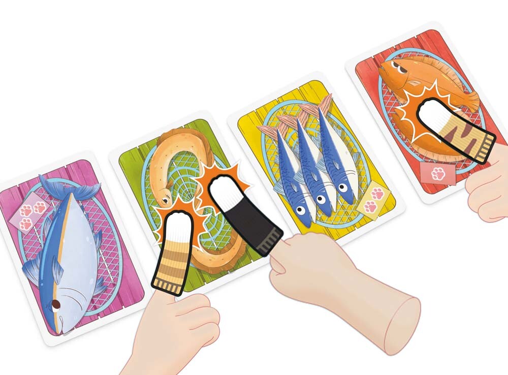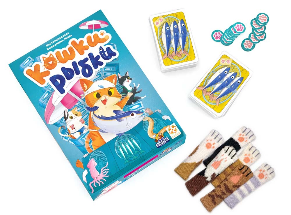 В данной настольной игре вас ждет карточное противостояние на скорость и удачу. В коробке вы найдете специальные тканевые лапки кошек, а также карты с различными изображениями рыб разных видов. Наденьте на палец кошачью лапку и приготовьтесь начинать! Выложив карты на стол, игроки одновременно указывают лапками на те или иные карты. Если на карту, которую вы выбрали, никто больше не указал, она достанется вам. Но если на карту претендуют несколько игроков, она не достанется никому. Тот из участников, кто наберет наибольшее количество рыб, станет победителем!