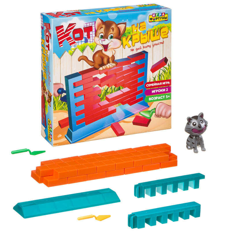 На небольшой стене из пластиковых кирпичиков сидит довольный кот. Не хотелось бы его потревожить, не так ли? В свой ход каждый игрок вытаскивает из стены кирпич, надеясь, что все не развалится. Если все-таки стена упадет, тот игрок, по чьей вине это произошло, будет считаться проигравшим. Вы же не хотите оказаться в числе проигравших?