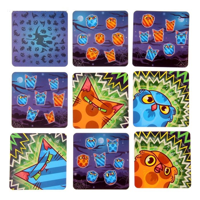 Перед вами увлекательная игра, развивающая логику, концентрацию и внимание. Внутри коробки вы найдете карты с изображениями котов и сов. Каждый из них может быть синим или оранжевым, пятнистым или полосатым. Их сочетание на картах разнится, а задания на счет по определенному признаку - количеству, виду, цвету и текстуре, могут стать серьезным испытанием. Но благодаря нескольким уровням сложности вы сможете настроить игру для детей разного возраста.