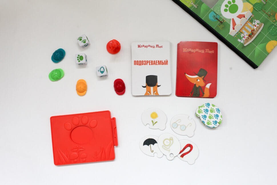 Сыщики идут по следу. Юные детективы с помощью кубиков передвигаются по полю в поисках подсказок или открывают карты подозреваемых, разложенные вокруг поля. Вставив в специальный дешифровальщик найденные подсказки, сыщики узнают отдельные приметы Коварного Лиса.